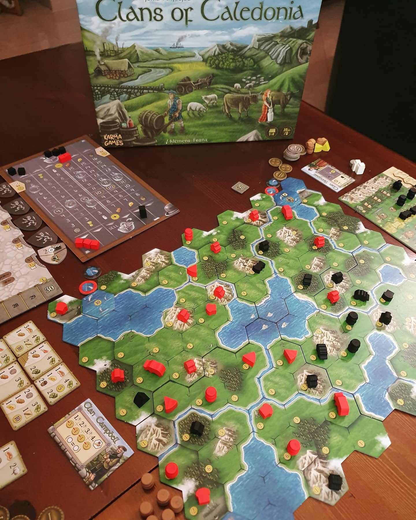 Desde o mapa às peças de madeira, Clans of Caledonia tem o aspecto de um Euro tradicional. Em termos de jogo, apresenta bons mecanismos para representar o mercado especulativo. Os jogadores vão construir ao longo do mapa para conseguir produzir e transformar produtos ao longo do jogo. É simples de perceber e sente-se a complexidade crescente, típica dos jogos em que se vai construindo para produzir. Muito bom, sobretudo para quem gosta deste tipo de mecânicas.
