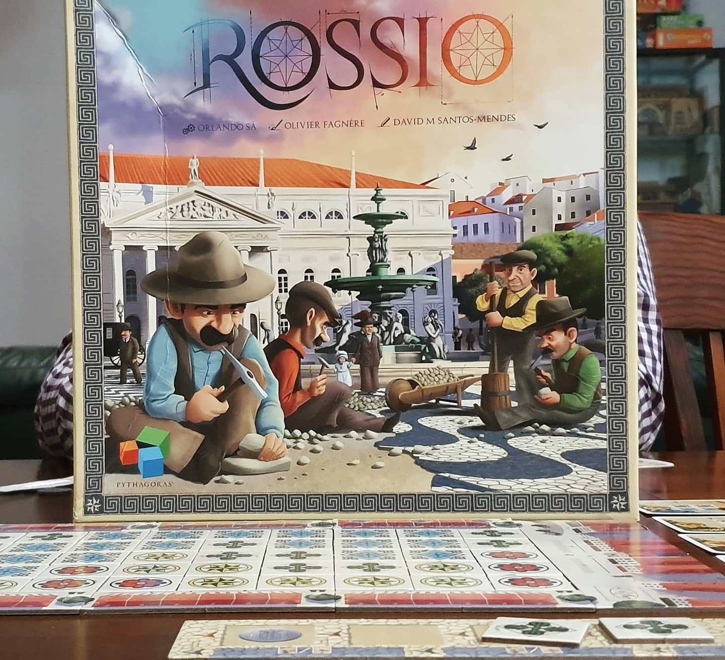 Rossio tem sabor a abstracto e apesar de algumas escolhas visuais se poderem enquadrar menos na típica calçada (mas sendo necessárias para uma melhor percepção visual do tabuleiro) gosto imenso do aspecto final. Neste jogo estamos a tentar concretizar e pontuar determinados padrões. Estes padrões são pontuados apenas por alguns turnos, pelo que o jogador tem de optimizar a construção de padrões de acordo com a rotação dos objectivos a pontuar.