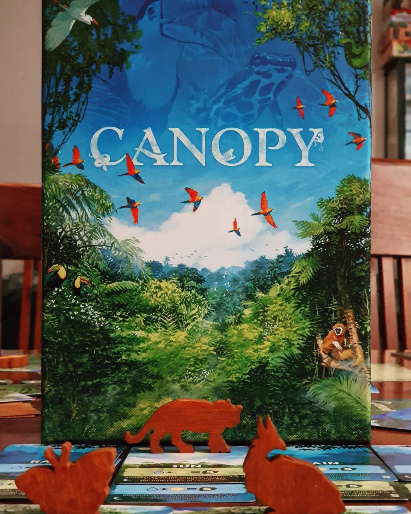 Uma boa surpresa a nível visual e em componentes, Canopy é um jogo em que coleccionamos e agrupamos algumas cartas para atingir maiores pontuações. Algumas cartas adicionam poderes e variações às acções ou aumentam a interacção entre jogadores. Uma das melhores surpresas deste ano nos kickstarters que nos chegaram a casa.