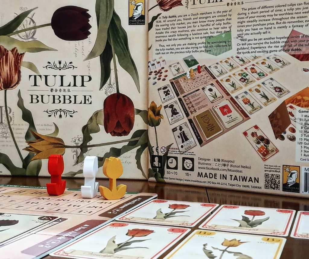 Para quem gosta de jogos com mercado especulativo, eis outro que surpreendeu pela positiva! Tulip Bubble não é muito falado, mas resume as mecânicas do mercado especulativo ao essencial, com a chegada de mercadorias e a variação de preços consoante a compra e a venda de, neste caso, tulipas. O jogo precisa de mais de três jogadores, razão pela qual demorou algum tempo a ir à mesa, mas o resultado surpreendeu em vários aspectos.