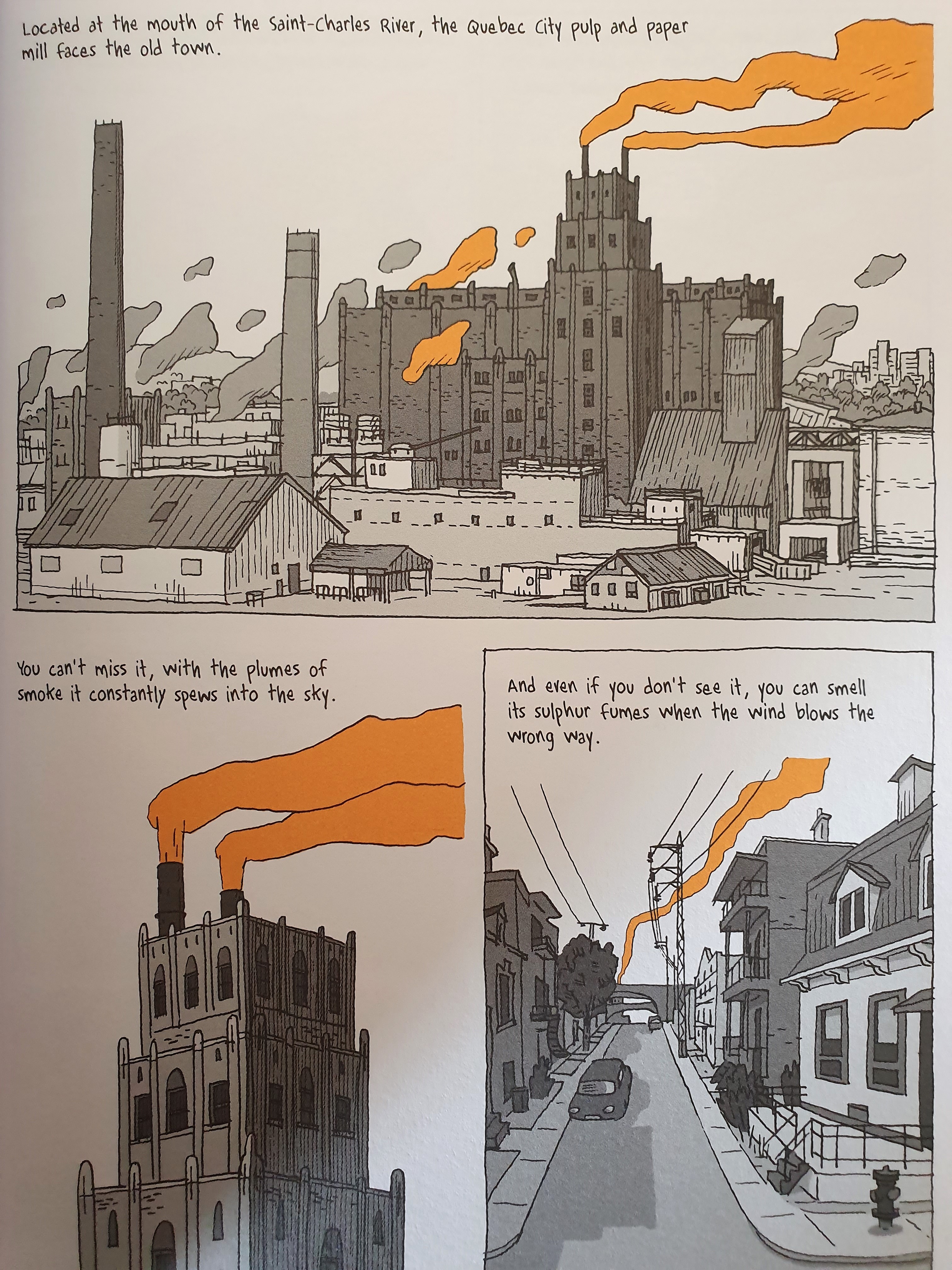 Guy Delisle é conhecido por várias histórias de banda desenhada onde apresenta as estadias em países politicamente instáveis ou complicados, como a Birmânia ou a Coreia do Norte. Mas este volume promete algo muito diferente, levando-nos às recordações do autor no seu primeiro trabalho de verão numa fábrica de papel.