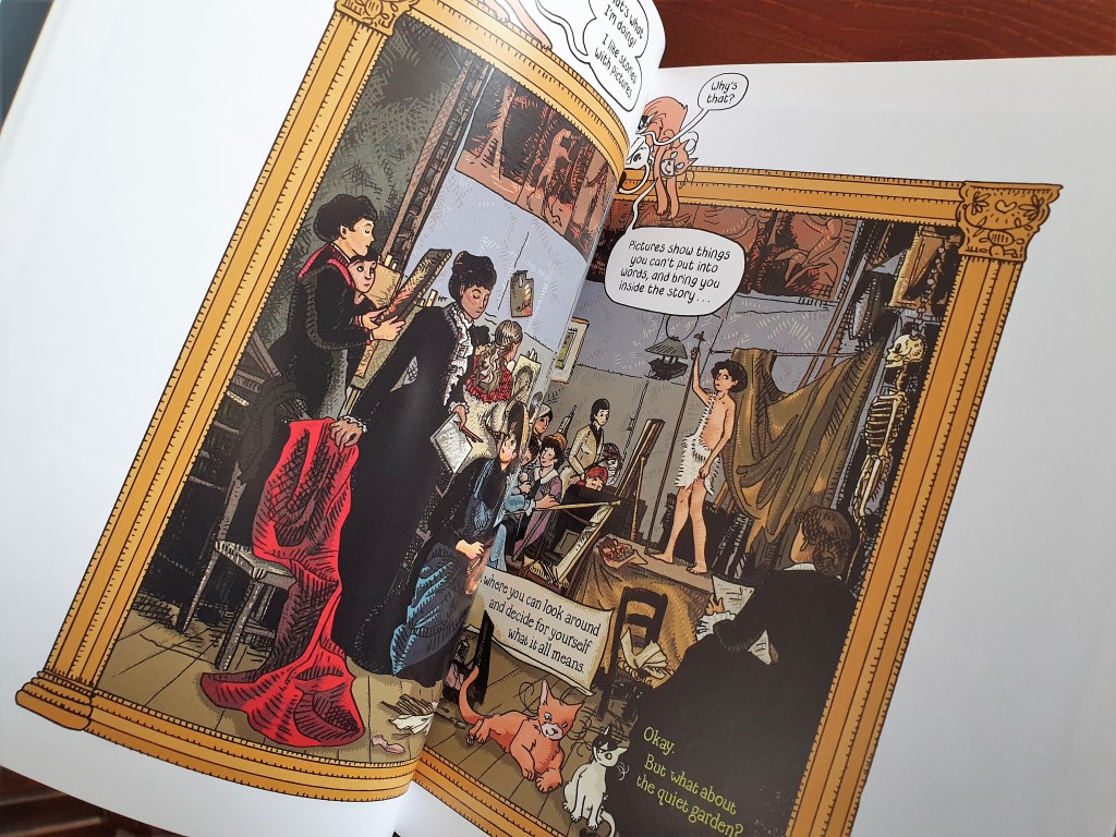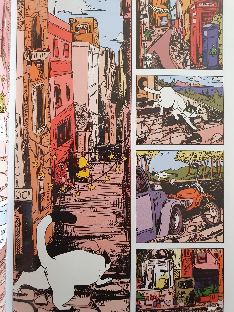 A par com a narrativa, o desenho é ligeiramente tosco, alternando entre a representação directa da aventura e momentos mais artísticos em que, por exemplo, se representam conhecidos quadros realçando (ou colocando) gatos em cena.
