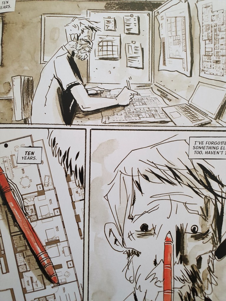 Entre séries como Descender e Sweet Tooth, Jeff Lemire é autor de algumas das minhas séries de banda desenhada favoritas. Enquanto desenhador tem um estilo muito próprio, visualmente relaxado que não agrada a todos os leitores. Este Mazebook é um livro de autoria exclusiva do autor.