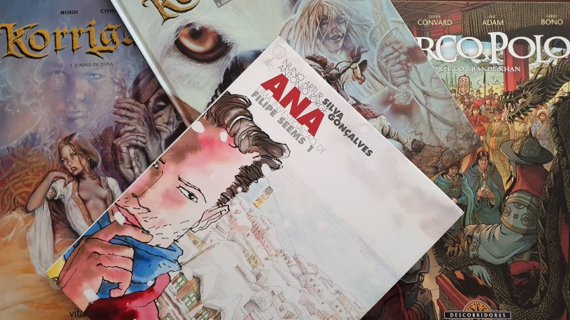96 – Ana – Nuno Artur Silva e António Jorge Gonçalves – Primeiro volume da trilogia, tinha ficado especialmente interessada por ter sido referenciada num Fórum Fantástico dos últimos anos. As letras não são facéis de ler (achei-as, até prejudiciais à leitura) e o ritmo não é dos melhores. Vou continuar, claro, com a leitura dos dois restantes volumes;