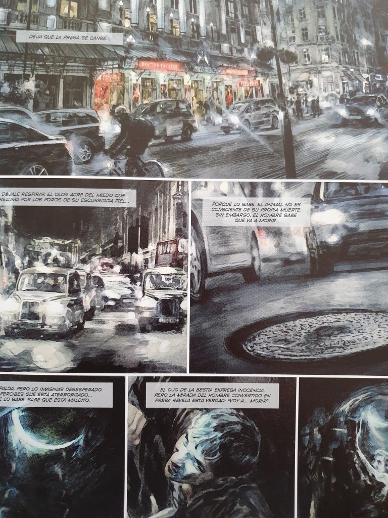 Então qual serão os pontos interessantes deste livro? Por um lado, o autor faz um exercício interessante ao longo de três épocas, construindo um puzzle e distribuindo as peças ao longo destas três partes. Existe alguma previsibilidade na forma como a narrativa se compõe, mas o autor consegue cruzar alguns detalhes curiosos, usando as histórias mais conhecidas do horror. Por outro, o visual é bastante curioso, sendo, nalgumas páginas excessivamente realista e brilhante, mas conseguindo, ainda assim, produzir algumas páginas espectaculares. Existe, no entanto, uma falta de nitidez constante, que, nalguns momentos, parece trazer uma sombra excessiva.