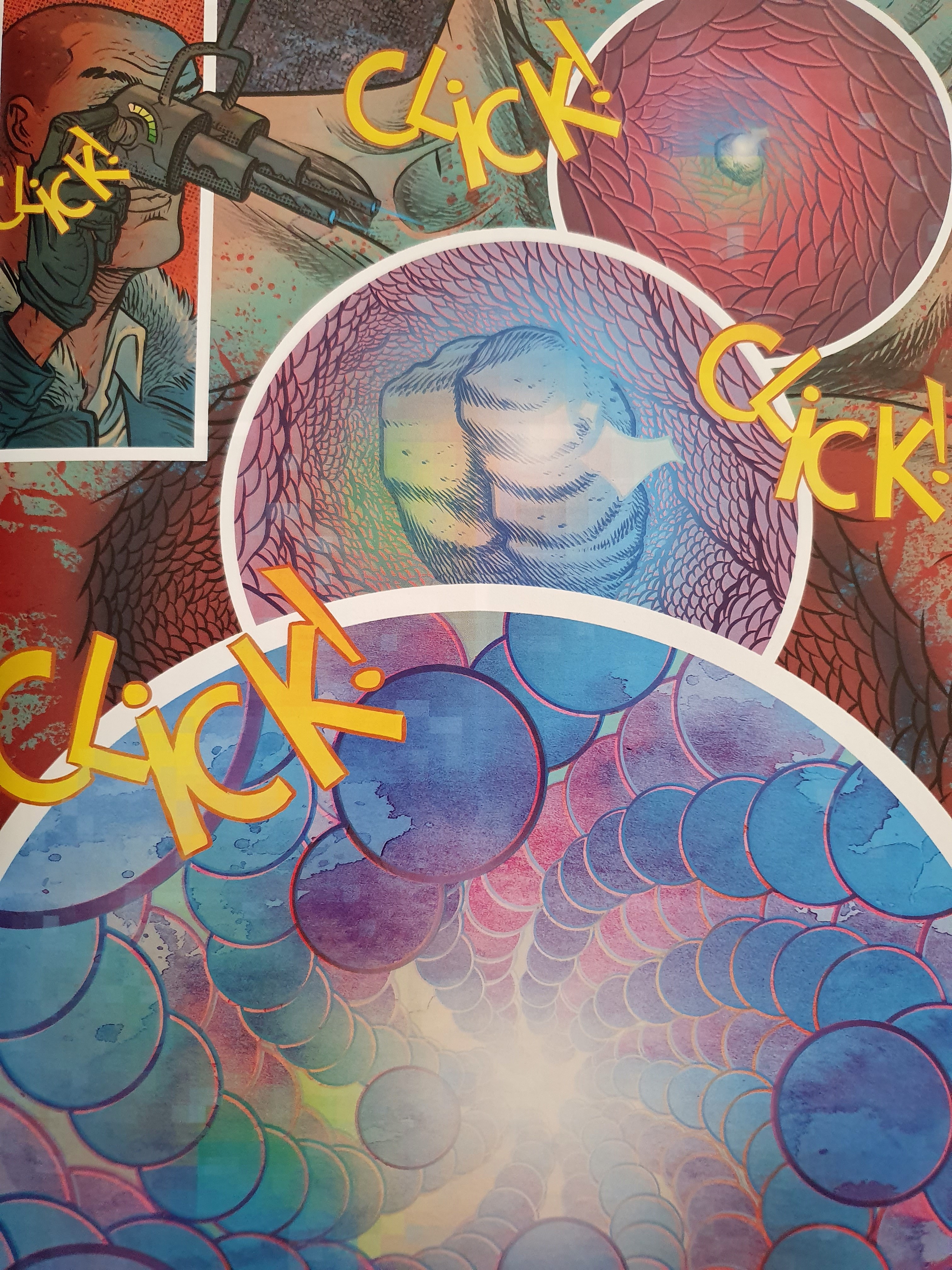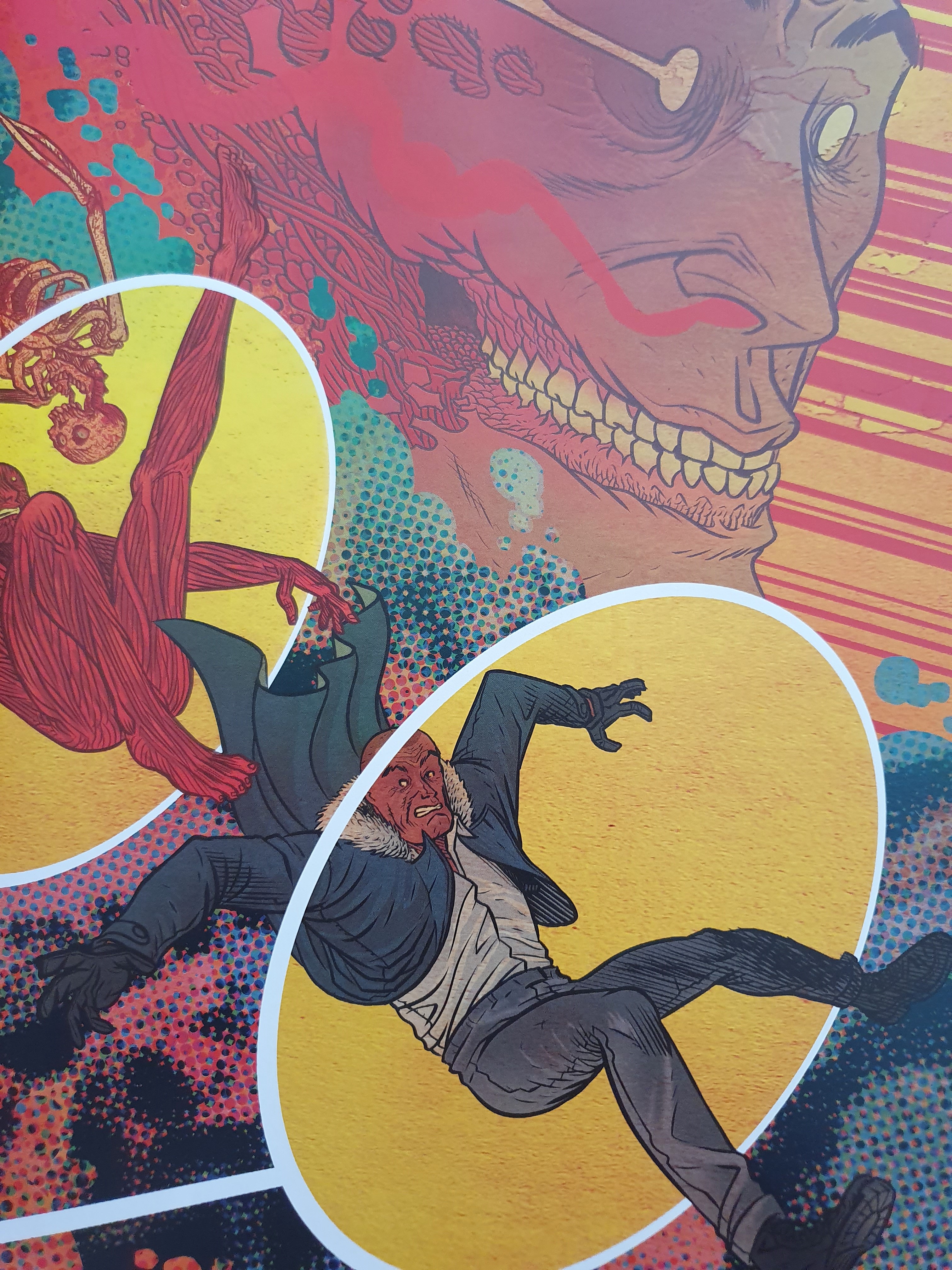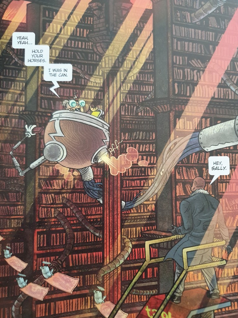 Em termos de qualidade da edição, conforme já referi, este problema apresenta capa dura e páginas com rebordo dourado. O papel é mais fino do que estava à espera, mas, estranhamente, e apesar da elevada densidade de cores, não deixa transparecer as imagems de um lado para a outro da página. No final encontramos alguns extras, especialmente estudos de personagem.