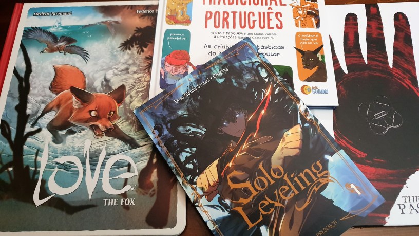 123 – Bestiário Tradicional Português – Nuno Matos Valente e Natacha Costa Pereira – Apanhado de várias criaturas das histórias tradicionais portuguesas, do Norte ao Sul do país. Cada criatura tem uma breve descrição e uma imagem ilustrativa, com algumas piadas leves. É um volume engraçado e aconselhável como introdução, ainda que, para mim, falte ser acompanhado por algumas lendas onde estas criaturas apareçam;