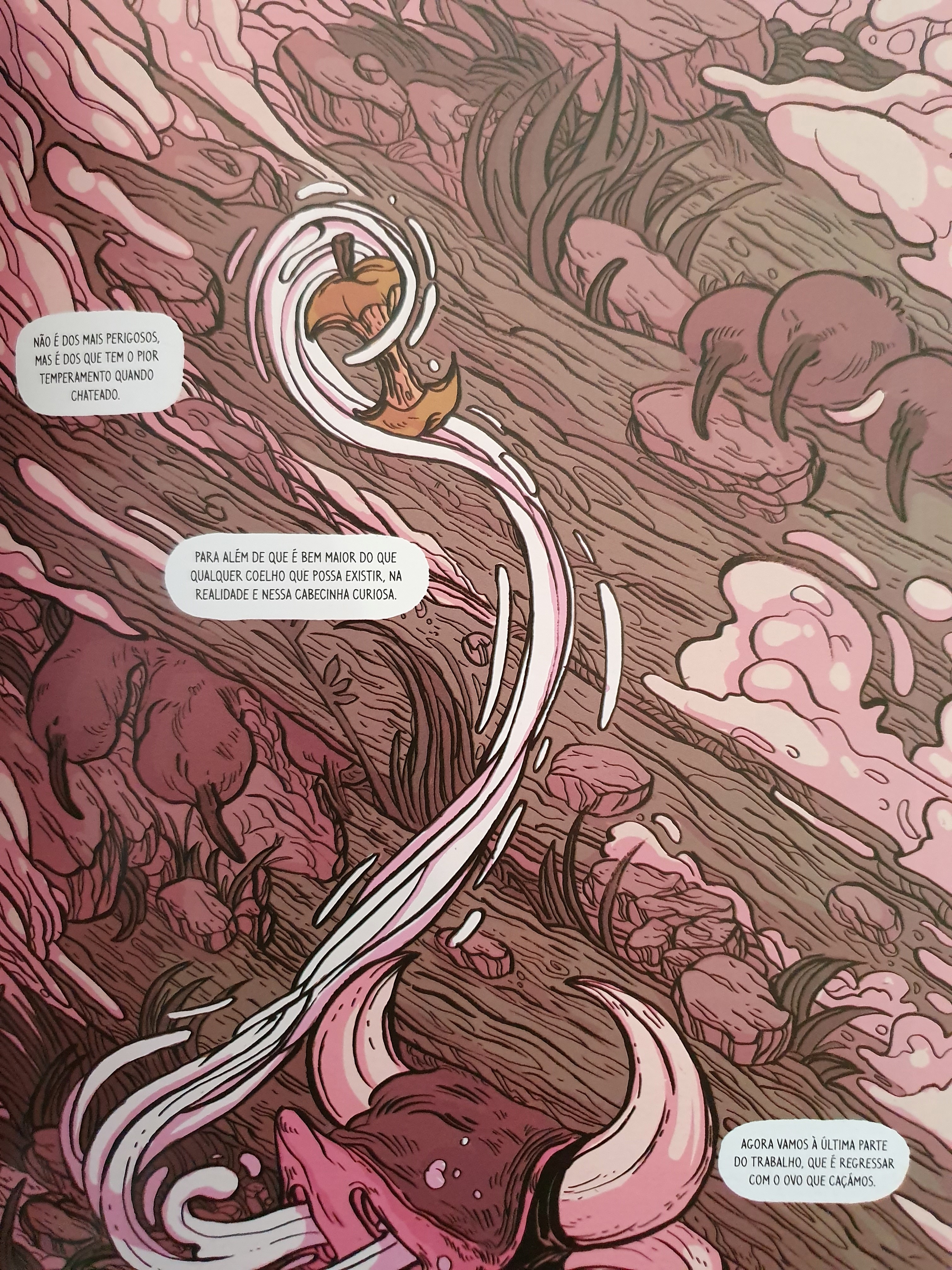 Mas eu não tinha já falado disto? Bem, não totalmente. Joana Afonso fez uma edição de autor da primeira parte deste livro, tendo o volume total sido publicado mais recentemente pela Editora A Seita. Apesar de gostar mais do fundo laranja, a edição em capa dura de A Seita apresenta um melhor balanço nas cores (demasiado saturadas na outra edição) e – claro – a história completa. O resultado é espectacular!