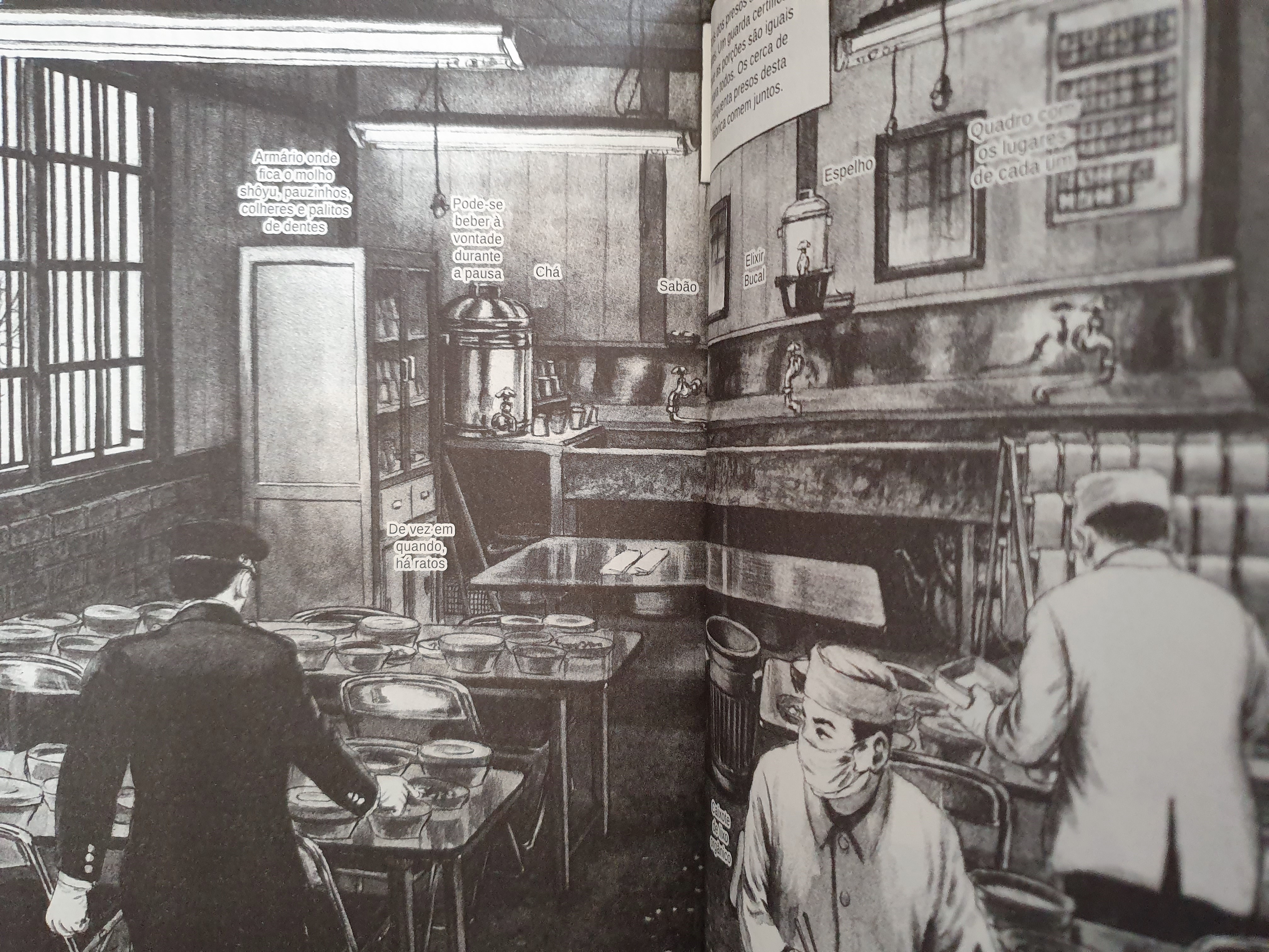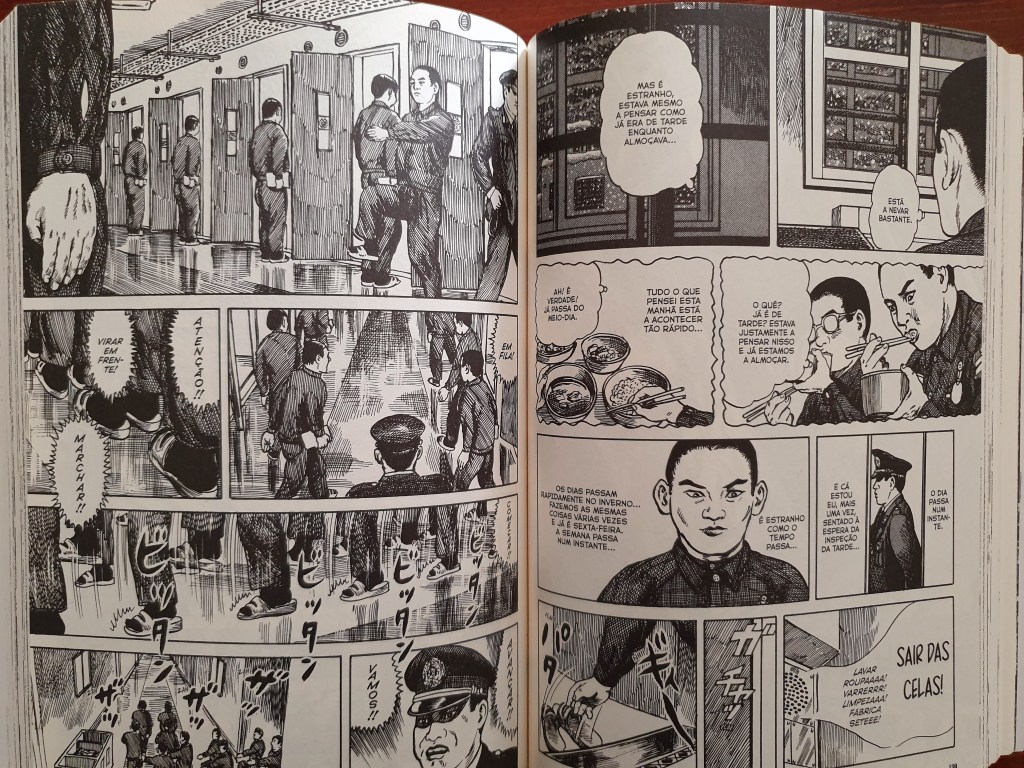 Na prática, diria até que é um dos aspectos em que a prisão japonesa parece fazer inveja a qualquer mortal que se encontre do lado de fora. Entre a descrição das refeições, sabores e doces, quem está preso parece não ter mais nada para se focar. As comunicações são escassas, as interacções são limitadas, as conversas não parecem ter evolução, tornando-se repetitivas, dia após dia. Só as refeições e as misturas com molhos parecem permitir alguma variação ao quotidiano da prisão.