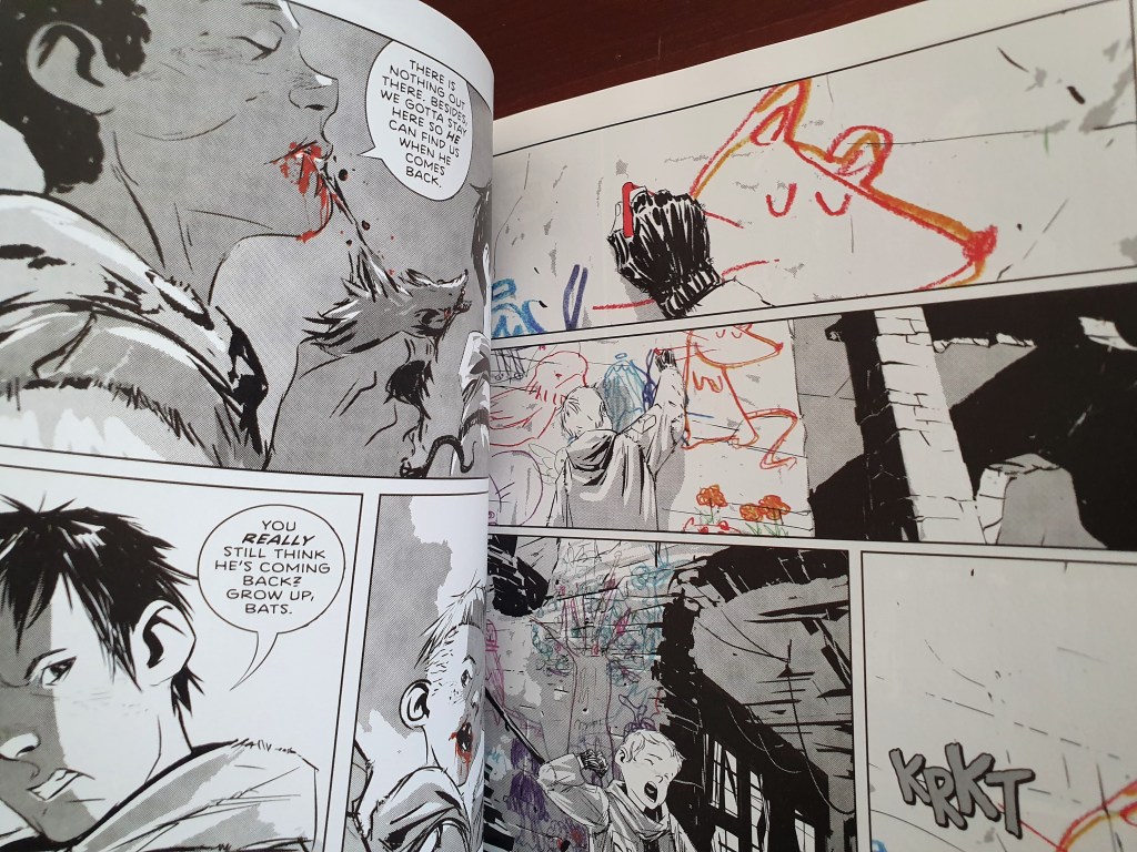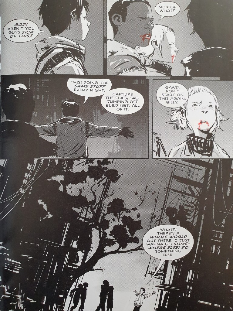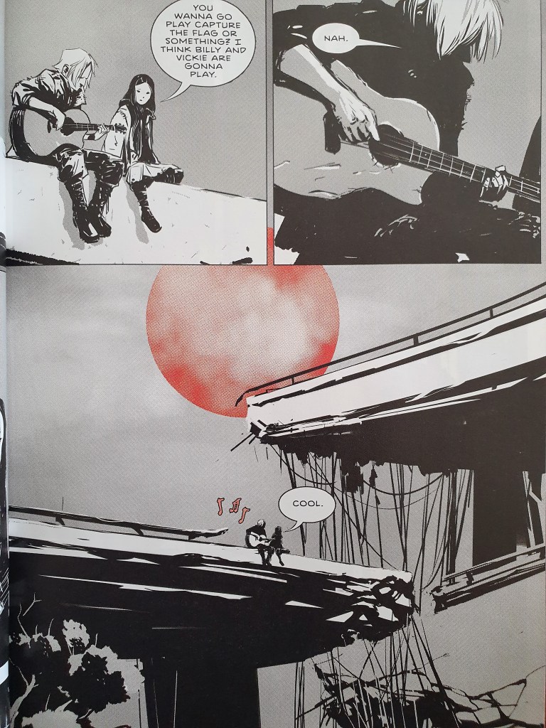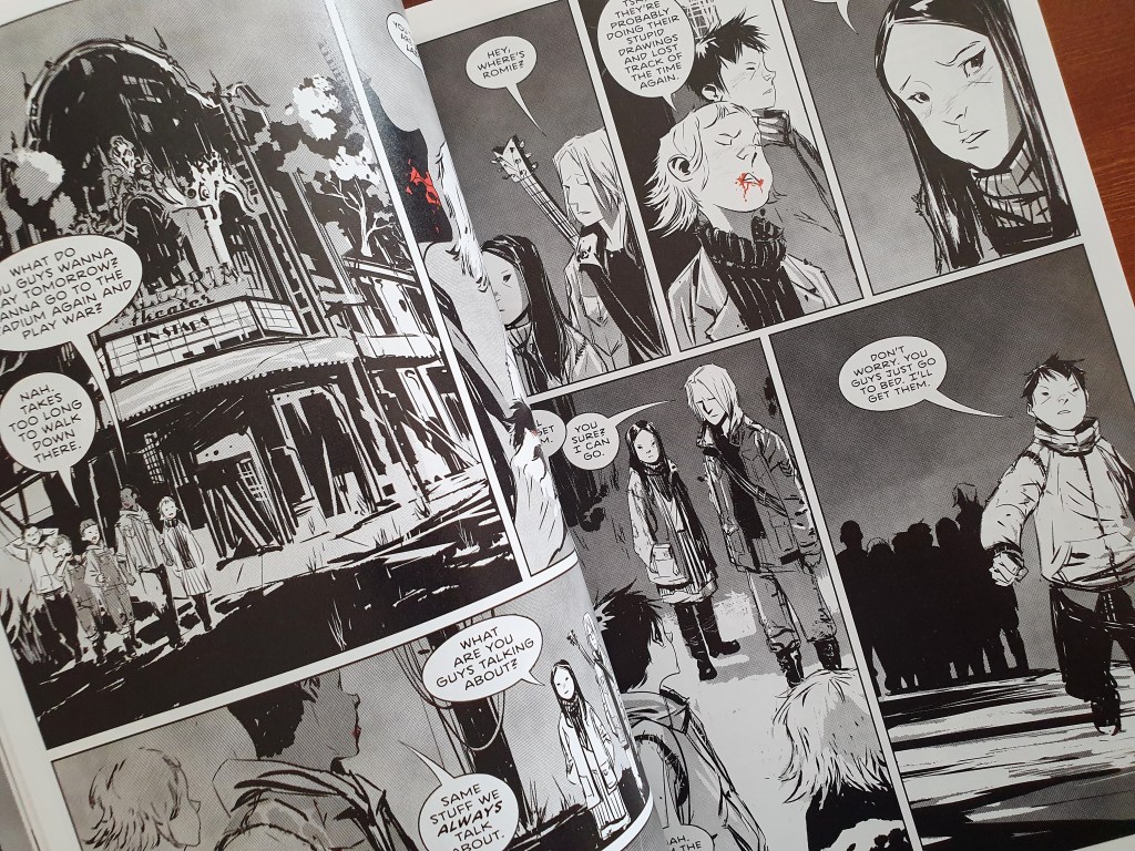 Jeff Lemire volta a fazer a magia de conseguir, em escassos episódios, caracterizar de forma única cada uma das personagens. A quase adolescente que gosta de ouvir músicas, o quase adolescente com a guitarra que tem uma queda para a filosofia, a dupla de gémeos reguilas que se mete em apuros constantes… O autor consegue rapidamente mostrar, também, as interacções dentro do grupo e o seu dinamismo.