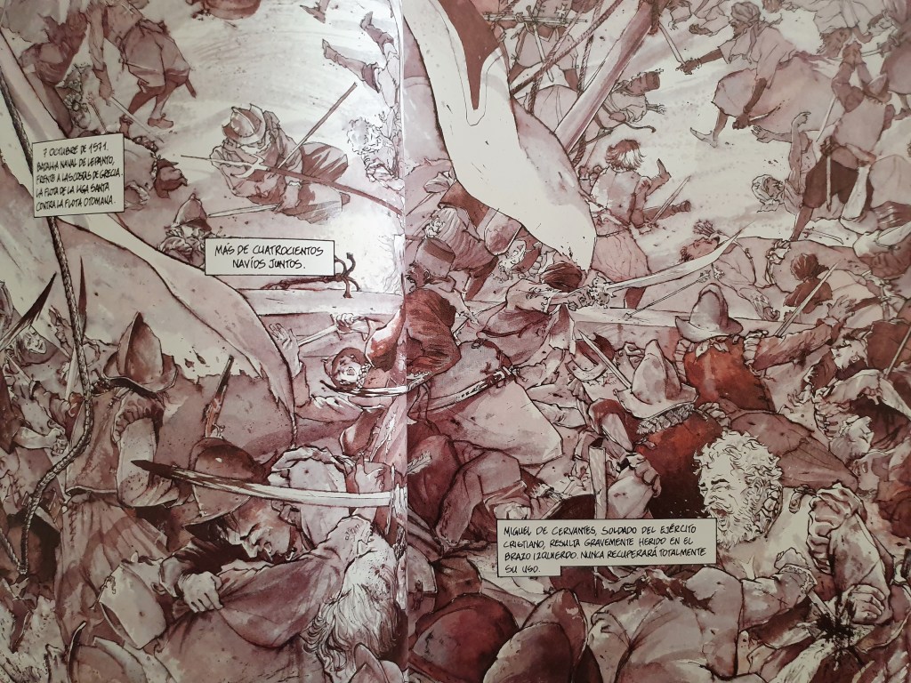 Mas este homem, apesar dos seus defeitos, tornou-se conhecedor dos clássicos e reconhece, ele próprio os paralelismos com a vida de Cervantes, e submete-se às semelhanças com D. Quichote, tecendo alguns paralelismos nas suas acções, de forma consciente, apesar da sua mente obtusa. Não é, assim, de estranhar que, após salvar um homem que não precisava de ser salvo, Cervantes vê o novo companheiro como um Sancho.