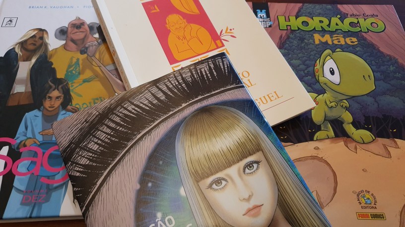 179 – Saga – Vol. 10 – Brian K. Vaughan e Fiona Staples – Esta fantástica série está de volta! A família sofreu algumas baixas, mas adicionou novos membros e saltita de planeta em planeta, fugindo dos que ainda querem eliminar Hazel. A sua existência tem um significado simbólico demasiado forte. A série continua com o seu humor peculiar, carregado de detalhes de teor sexual e violento, alternando com momentos mais sombrios;
