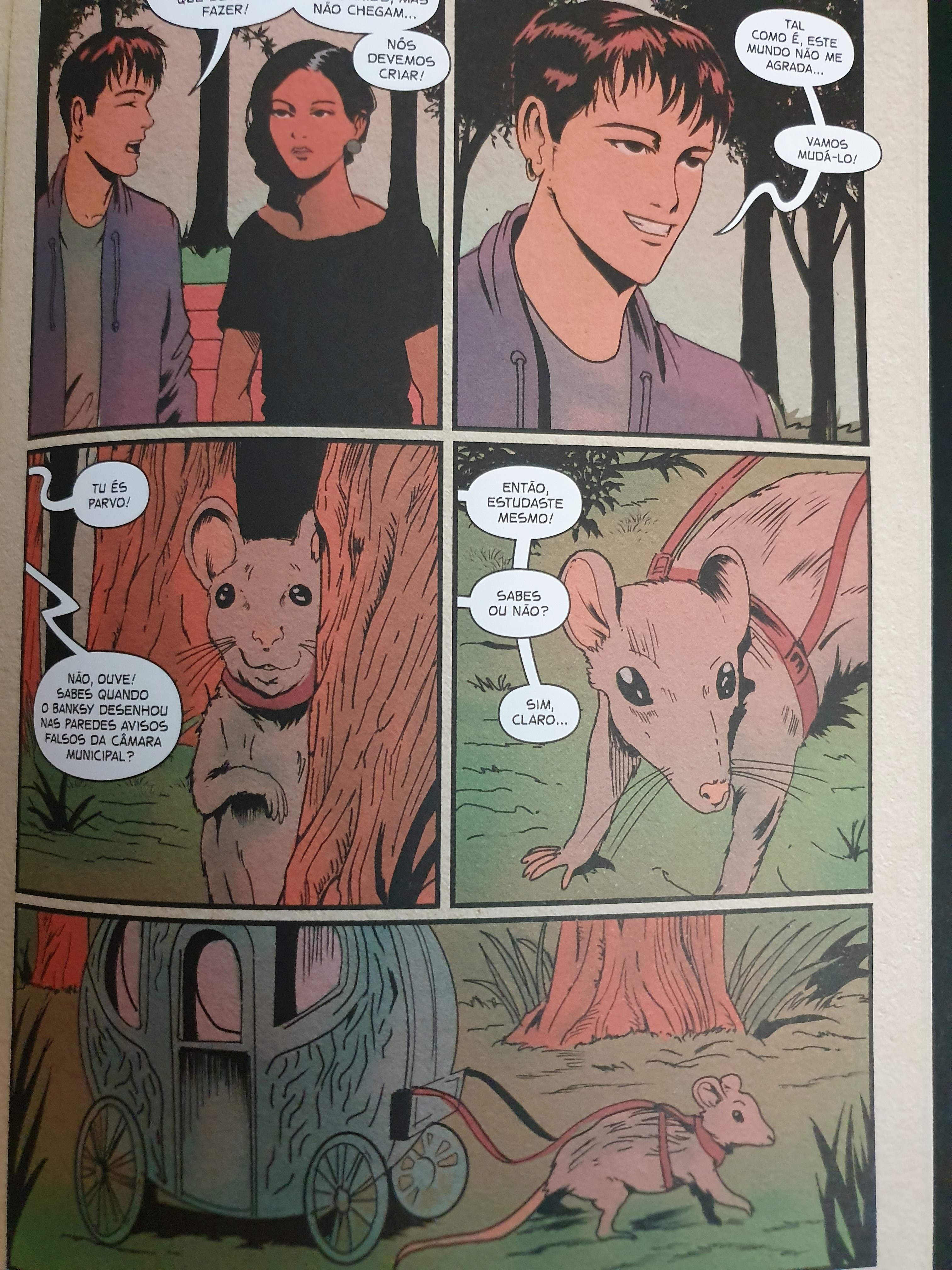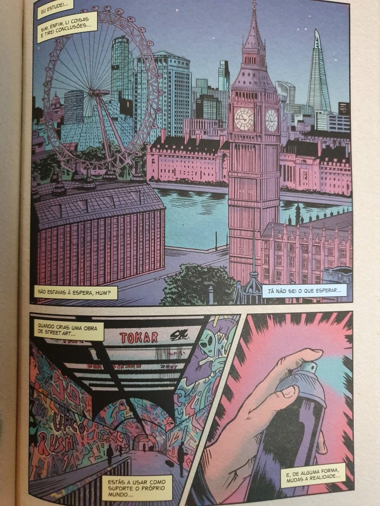 E é desta forma que se desenvolve alguma conversa em torno de Banksy, uma tarefa bastante difícil para os autores, dado todo o mistério que envolve o artista. Através das duas personagens fala-se de momentos chave da sua carreira, e da subversão das regras sociais, principalmente daquelas que parecem mais ridículos.