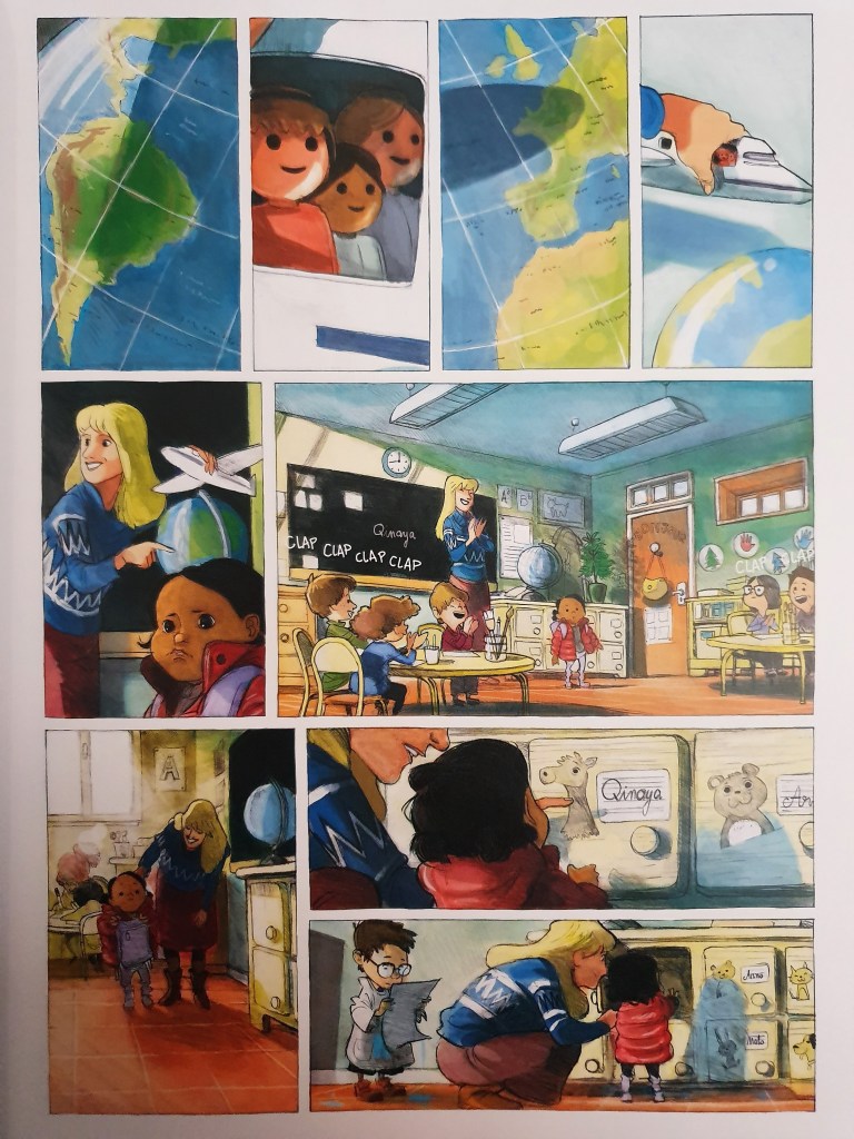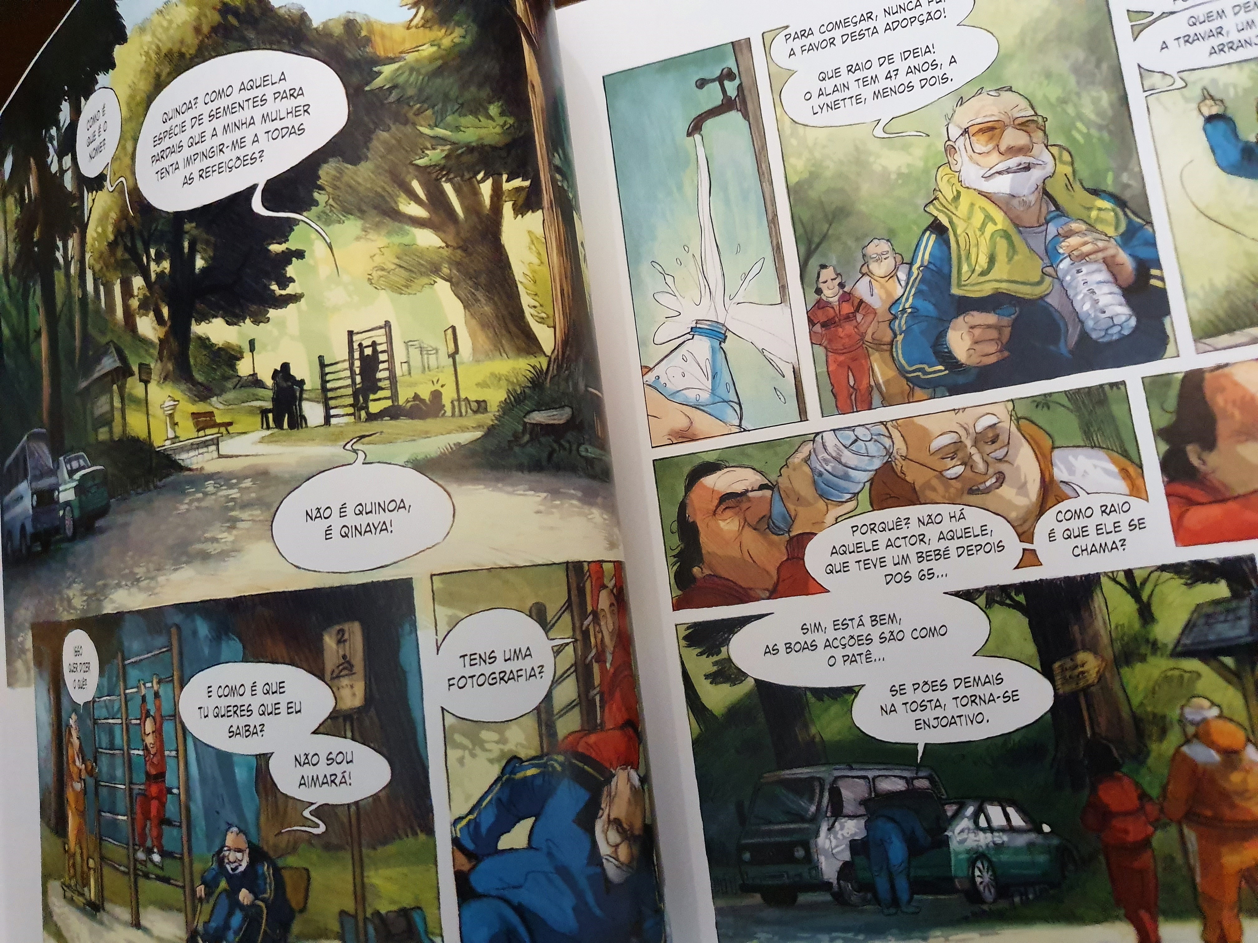 A história é, desta forma, brutal. Sem violência física ou verdadeira violência psicológica, consegue chocar-nos emocionalmente, quase decepcionarmos pelas personagens que tomam decisões erradas. Já o desenho, esse, é, também ele, perfeitamente emotivo, apesar da aparência simples. Simples porque há momentos quase esboçados, em que os quadrados se resumem ao essencial, e por conta da forma como usa as cores. Mas essa redução ao essencial é exactamente o que necessário em alguns momentos, com um grande foco na interacção, ou nas expressões.