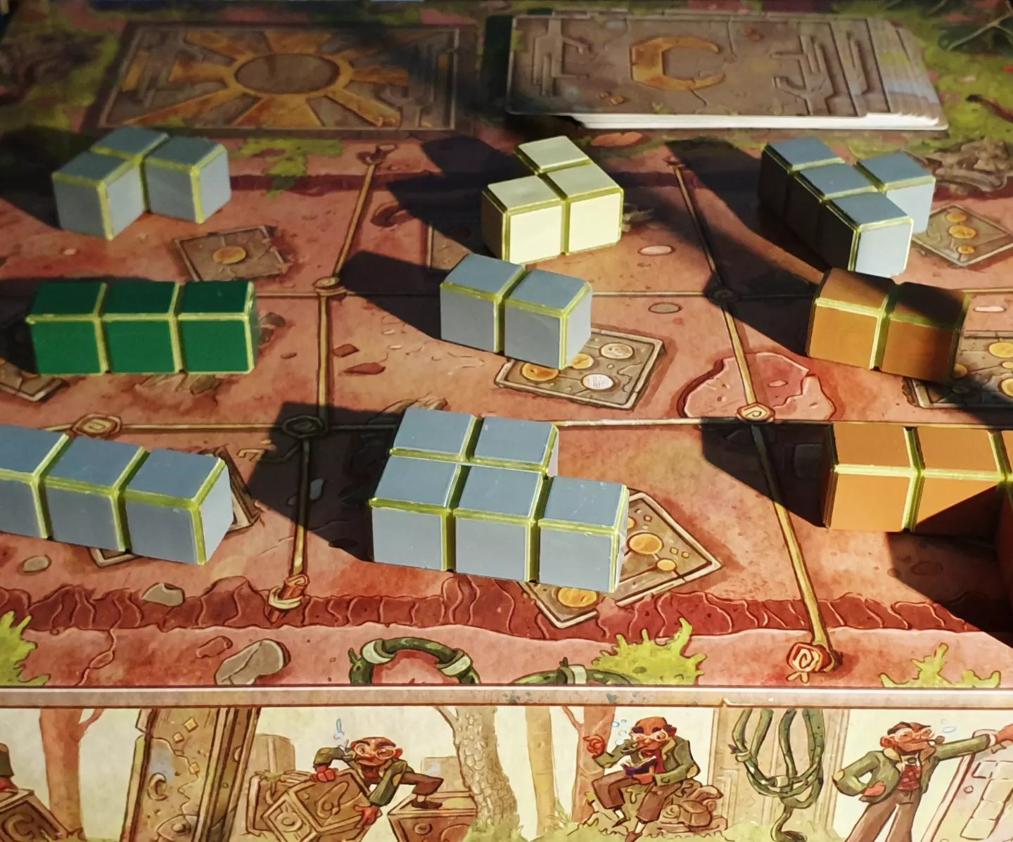 E, claro, como os olhos também comem, todo o visual do jogo ajuda. A temática, associada ao templo antigo, confere um aspecto peculiar ao tabuleiro que se destaca entre outros jogos do género.