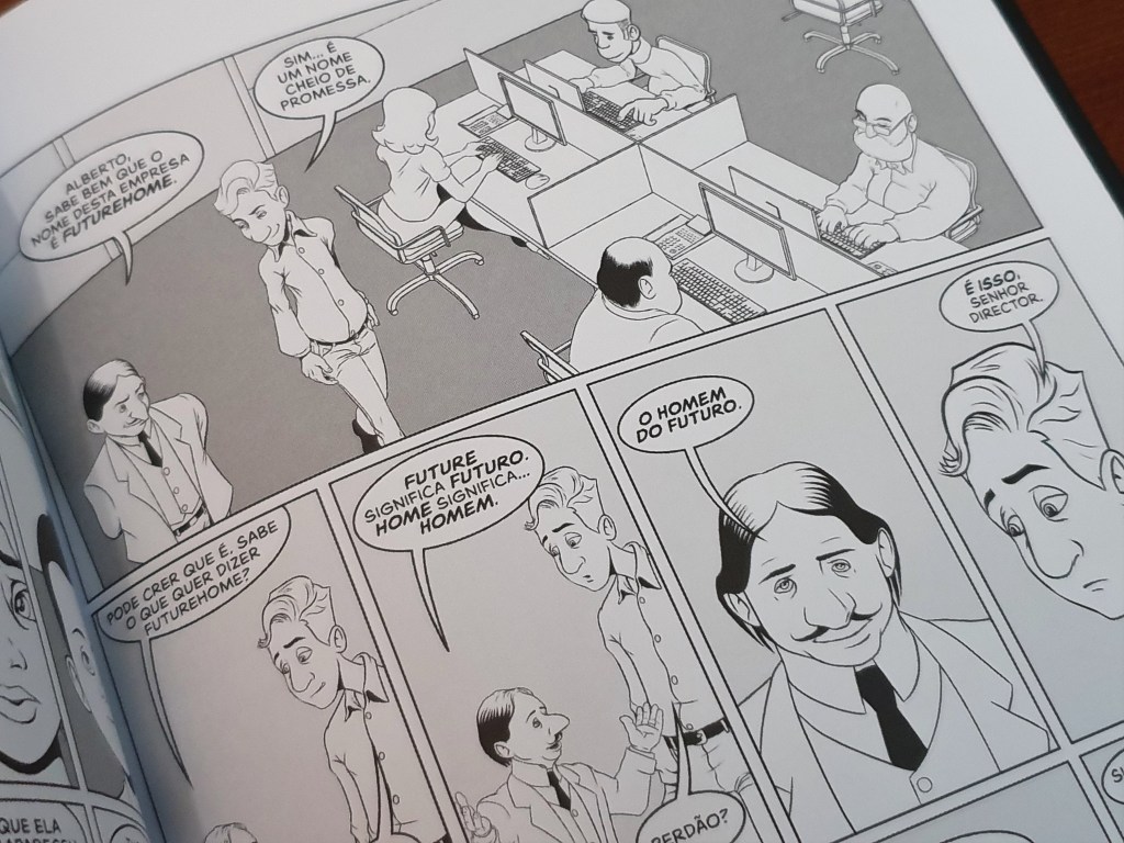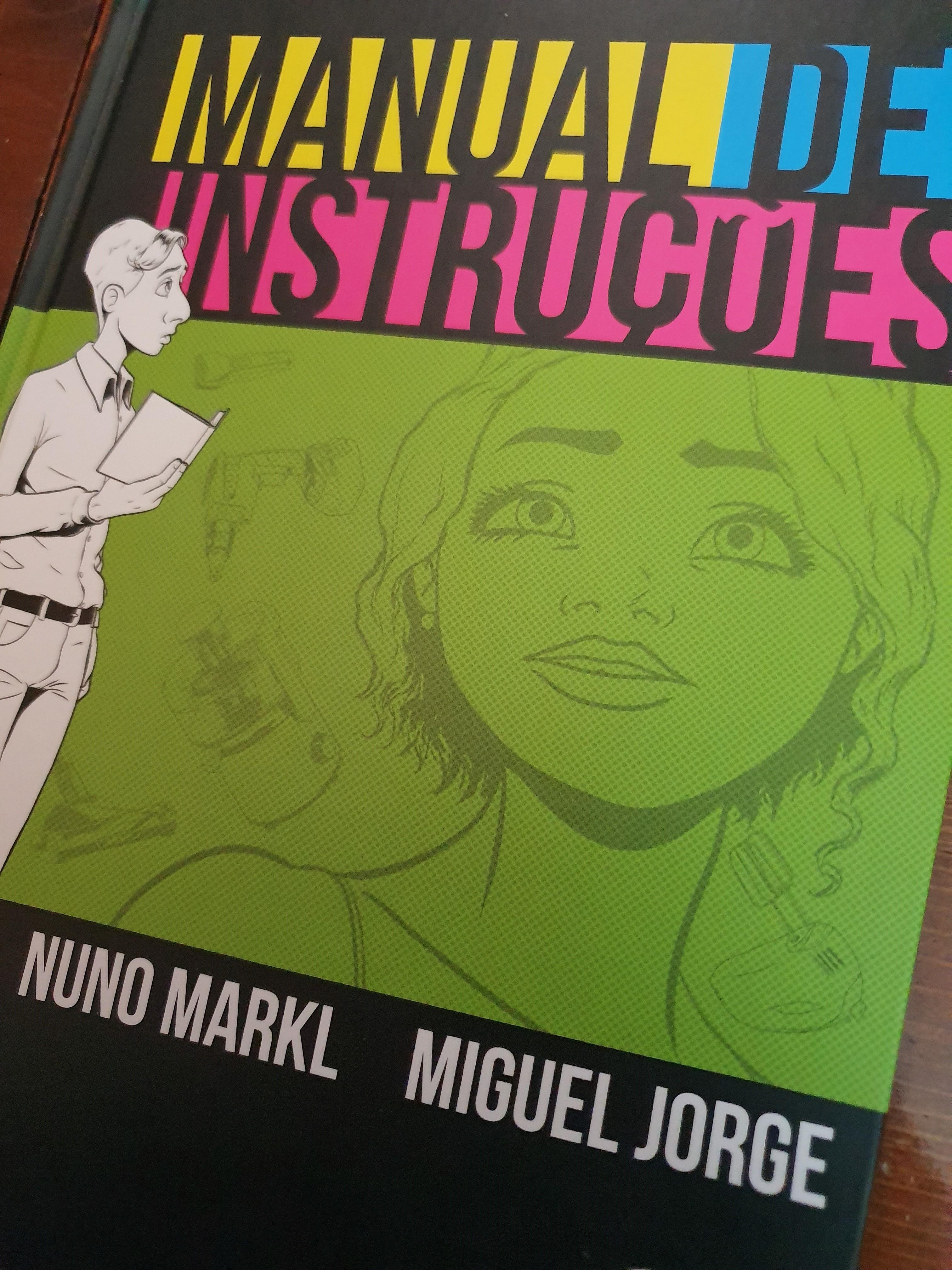 Miguel Jorge é um conhecido autor de banda desenhada que tem publicado várias coisas no nosso mercado – como Apocryphus, uma antologia de histórias em banda desenhada que reúne vários autores e que pretende distribuir os rendimentos entre os criadores. Por sua vez, Nuno Markl é conhecido pela participação em vários programas humorísticos, e terá vários guiões por adaptar e lançar – mas e se, ao invés de criar filmes e séries, estes guiões forem adaptados para banda desenhada? Assim surgiu este Manual de Instruções, uma história criada para a televisão, mas que viu a luz em quadrados desenhados.