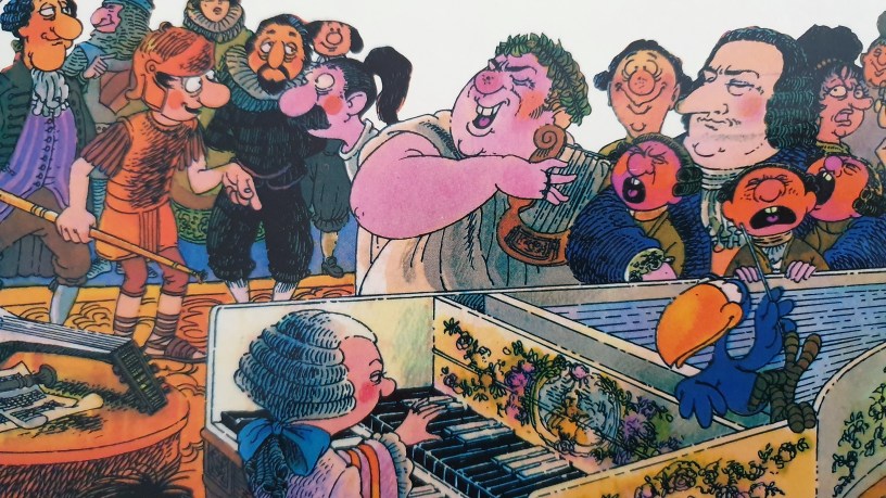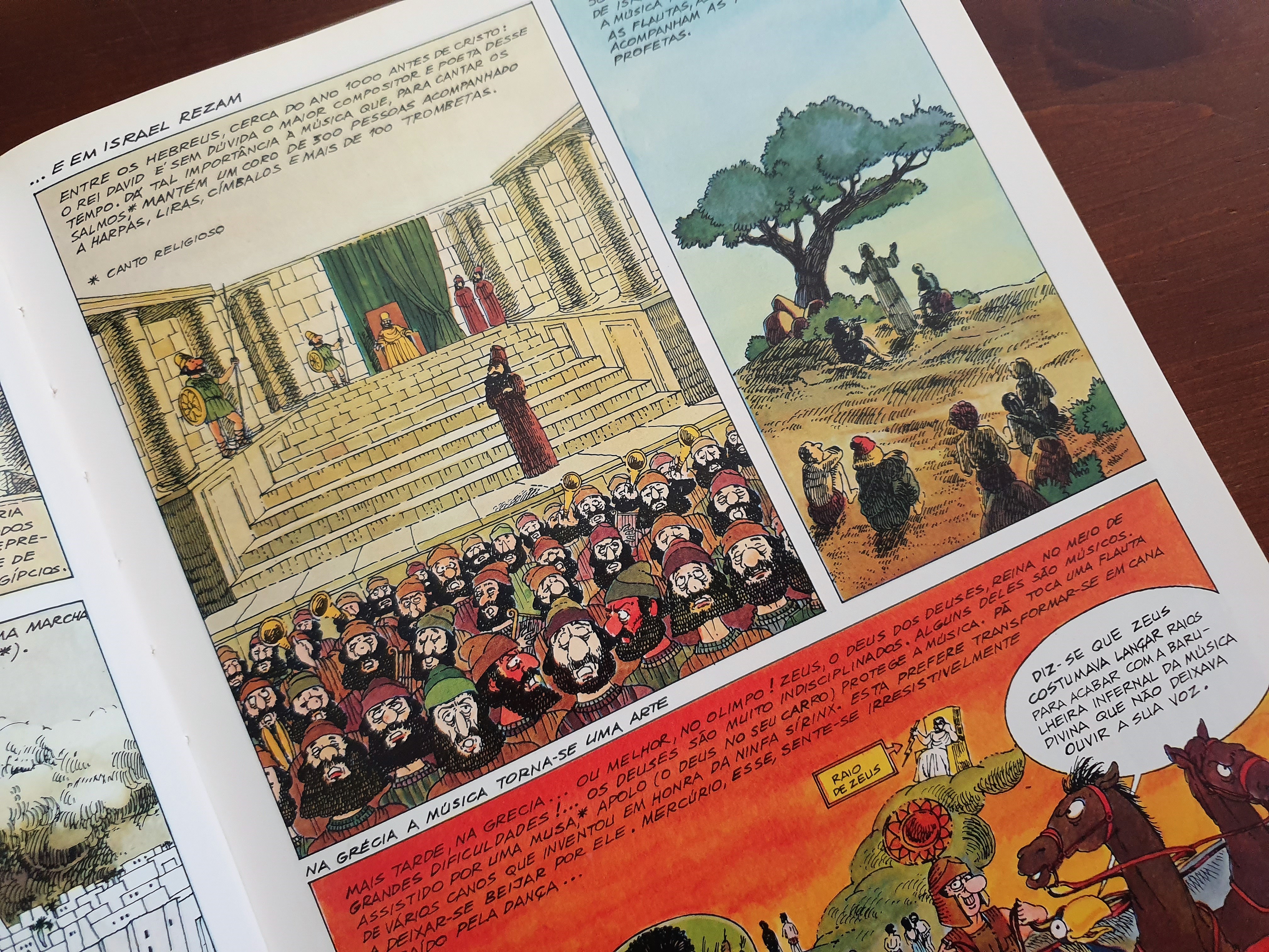 História da Música em banda desenhada começa por referir como a música era vista na pré-história e nas civilizações antigas (desde a Grega, à Mesopotâmia e passando pelo Egipto), para rapidamente passar aos grandes compositores e detalhar os aspectos mais relevantes de cada um.