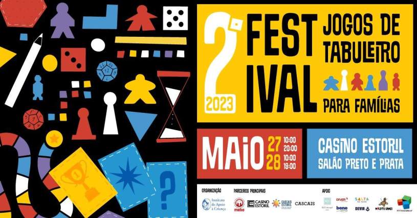 Decorre, no final do mês, nos dias 27 e 28 de Maio, o Festival de Jogos de Tabuleiro para famílias, no Salão Preto e Prata do Casino Estoril. Tendo ido à primeira edição do Festival, tenho a dizer que é um evento mais direccionado para jovens e famílias, onde várias editoras colaboram para terem os jogos expostos e disponíveis para jogar. Na sala estavam dispostas várias mesas, já com o jogo preparado e explicadores que introduziam rapidamente as regras. Para entrar no evento, os adultos tinham de adquirir bilhete, mas o valor, além de baixo, podia ser usado para adquirir jogos nas bancas das várias editoras.