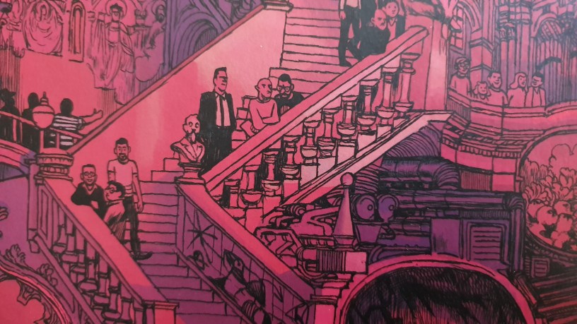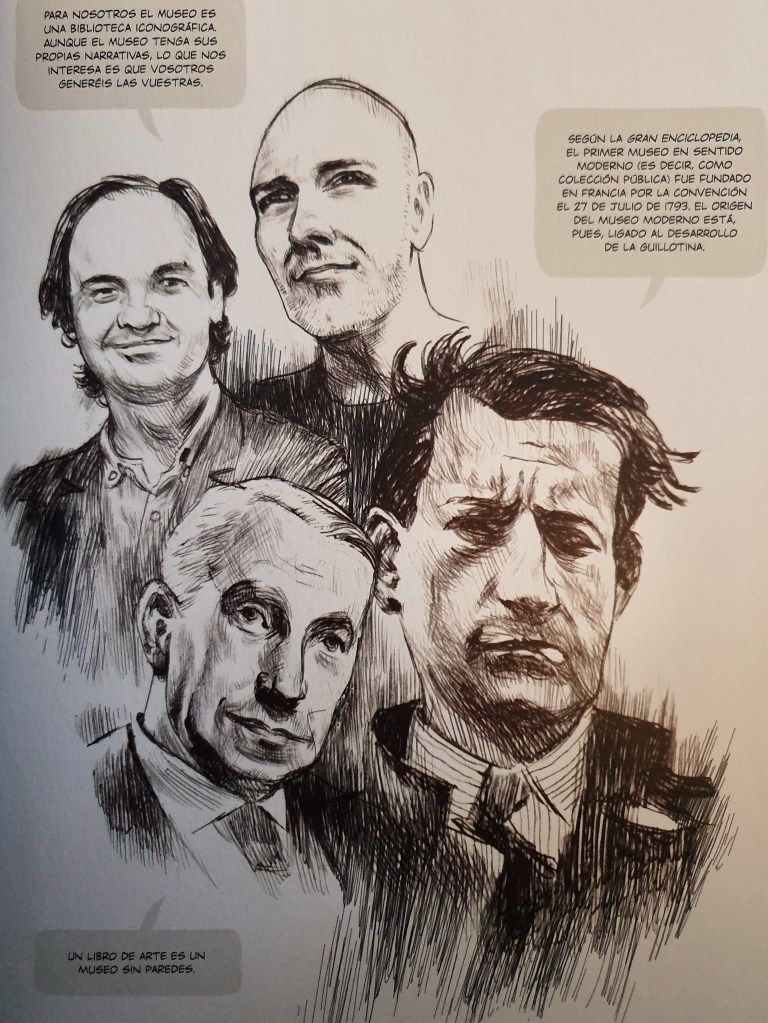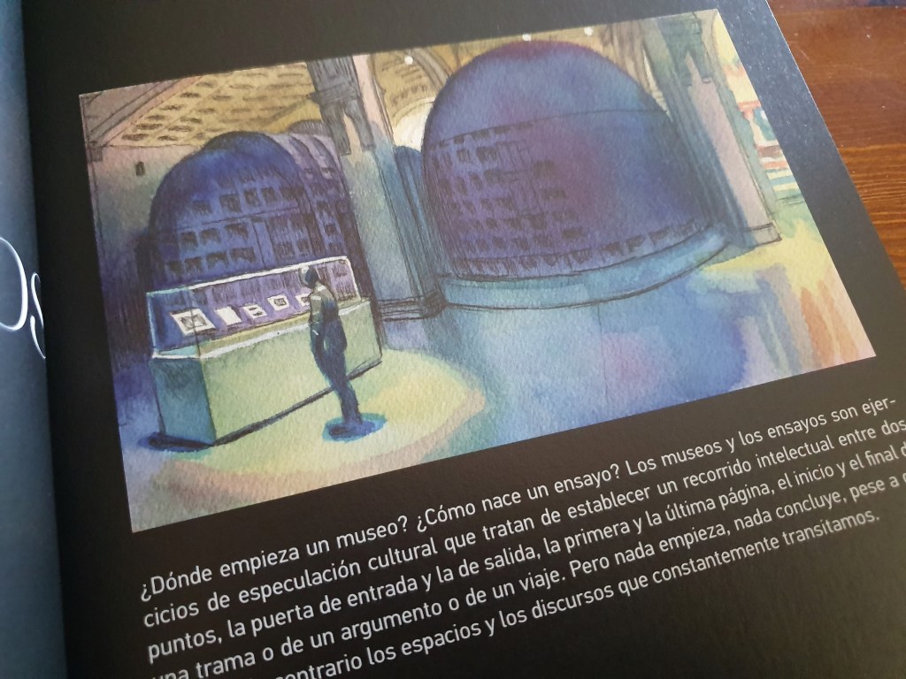 Eis um volume não ficcional de banda desenhada, que se centra no Museu Nacional de Arte da Catalunha, e que foi publicado pela Norma em dois idiomas – espanhol e catalão. O autor é o mesmo de outros livros não ficcionais sobre livros e bibliotecas (Livrarias e Contra a Amazon), ainda que só tenha reparado quando o comecei a ler. Eis, portanto, um exemplo de alguém que lê o que alguns chamam de literatura a sério, mas que percebe o lugar da banda desenhada como meio para expor algumas narrativas, firmando-o como um dos modos mais antigos de passar mensagens.