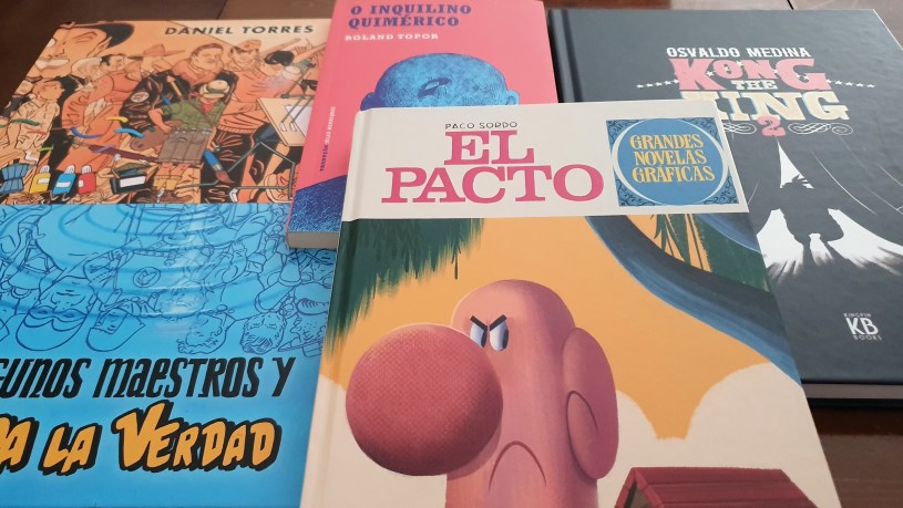 142 – El Pacto – Paco Sordo – A história centra-se em Miguel Gorriaga, personagem ficcional que vive na Barcelona dos anos 50 e que tem como objectivo tornar-se autor de banda desenhada. Após várias tentativas frustradas, opta por métodos alternativos que lhe concederão o intuito desejado. Entre a realidade e a ficção, entre a paródia e a homenagem, o livro apresenta-se fluído e bem disposto, com detalhes de loucura. Uma leitura agradável e mirabolante;