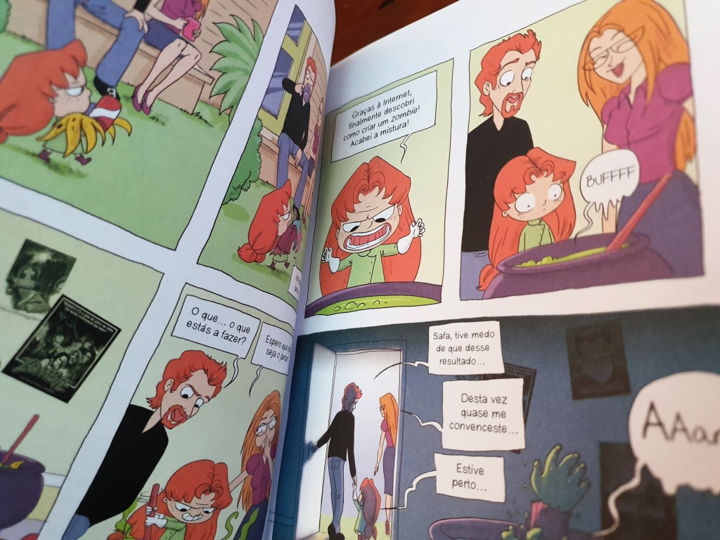 O livro alterna desenhos com texto, onde se destacam caricaturas, piadas alusivas a filmes (que os adultos decerto apanharão) e expressões cómicas. Existem, claro, os momentos de tensão e de acção que conferem fluidez na leitura.
