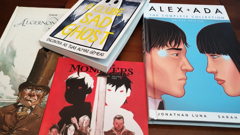 193 – Alex + Ada – Jonathan Luna e Sarah Vaughn – Este volume reúne a totalidade da série Alex + Ada. Trata-se de uma série de banda desenhada de ficção científica que decorre num futuro próximo onde é possível adquirir andróides, robots de aparência humana que conseguem interagir e responder aos humanos. Quando a avó lhe oferece um destes “brinquedos”, Alex questiona-se se, por detrás daquela aparência, não estará uma consciência. É uma boa leitura, ainda que pausada e com momentos de introspecção – não sendo a melhor banda desenhada de ficção científica que li, é recomendável para quem gosta do tema;