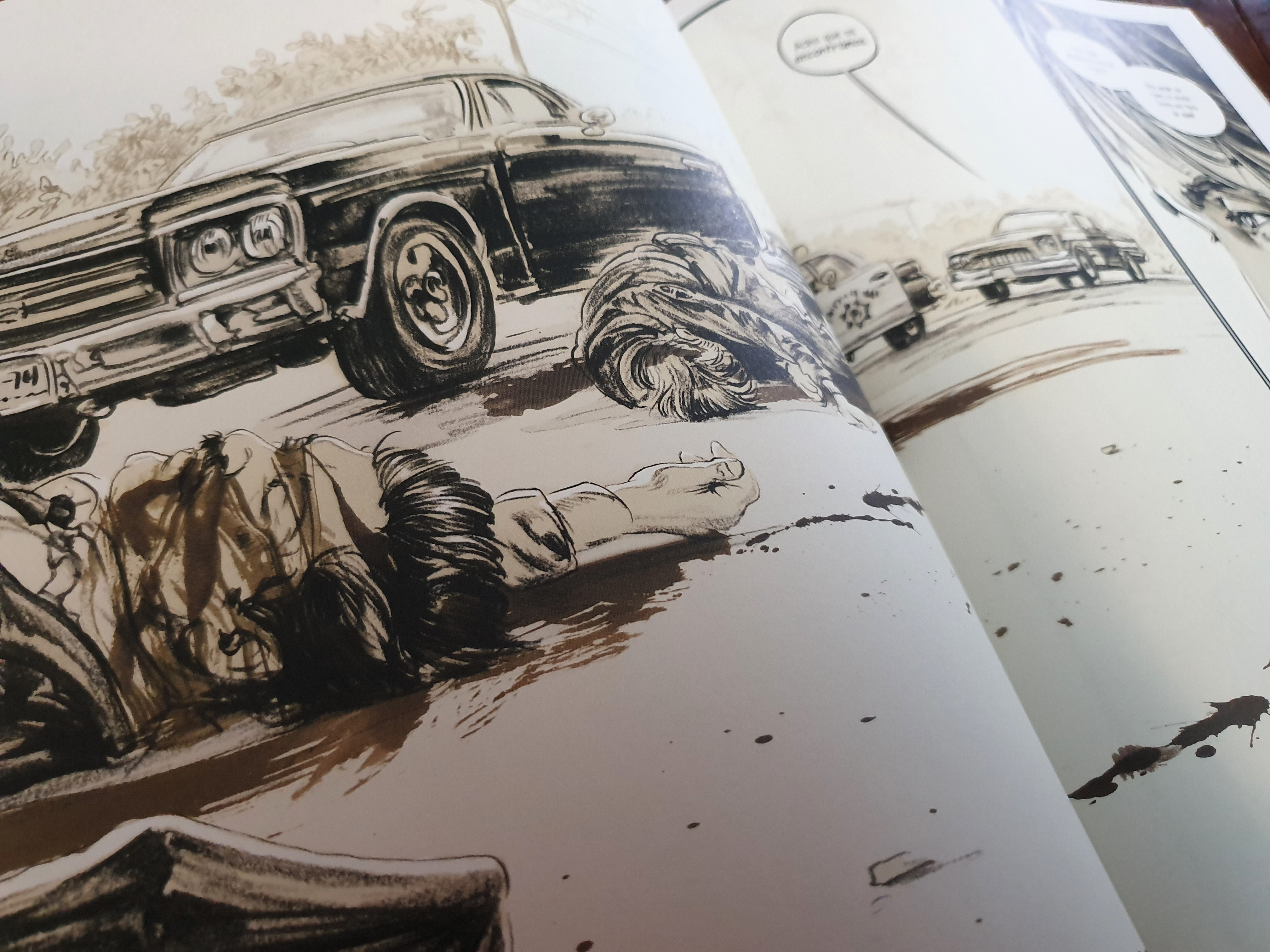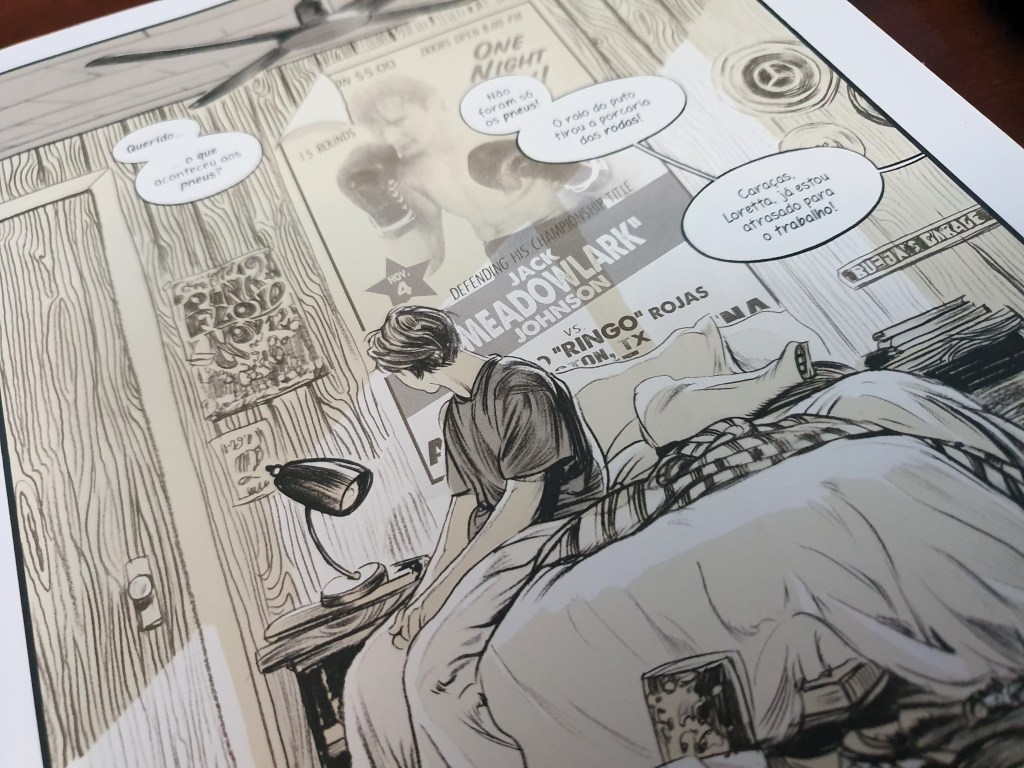 Meadowlark é uma história pesada e movimentada onde se denota uma tensão crescente. A narrativa apresenta uma perspectiva quase cinematográfica, alternando o foco em conversas rápidas mas significativas e momentos de acção. O desenho apresenta-se em tons suaves, nem sempre com contorno, ou com contorno contido que destaca o essencial. Apesar das cores sépia, os desenhos são simultaneamente suaves no tom e fortes em detalhes.