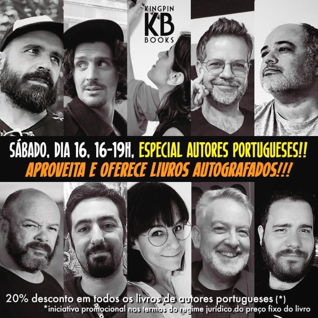 Hoje (Sábado, dia 16) entre as 16h e as 19h, irão decorrer várias sessões de autógrafos com autores portugueses na Kingping books! Para além dos autógrafos, estarão disponíveis prints exclusivos e está em curso um desconto de 20% em todos os livros de autores portugueses!