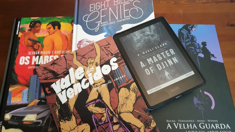 267 – A velha guarda – Vol. 1 – Rucka, Fernández, Miwa e Wynne – Não sabia muito bem o que esperar deste livro e, talvez por isso, me surpreendeu. A premissa não é totalmente nova, focando-se em seres humanos que, de alguma forma, se tornam quase imortais. Capazes de viver vários séculos, são poucos – e cada vez que mais um aparece, os restantes sonham com ele até o encontrarem. Neste caso, o grupo de quase imortais forma um grupo armado que intervém nalgumas situações militares, por exemplo, para salvar reféns. Mas desta vez a missão é um engodo. É uma narrativa amarga, em que as personagens já perderam o brilho pela vida (pela própria e pela dos outros). Possui alguns elementos comuns a outras narrativas sobre imortalidade (ou longevidade) mas introduz uma combinação curiosa e diferente que permite um resultado original, inesperado e cáustico;