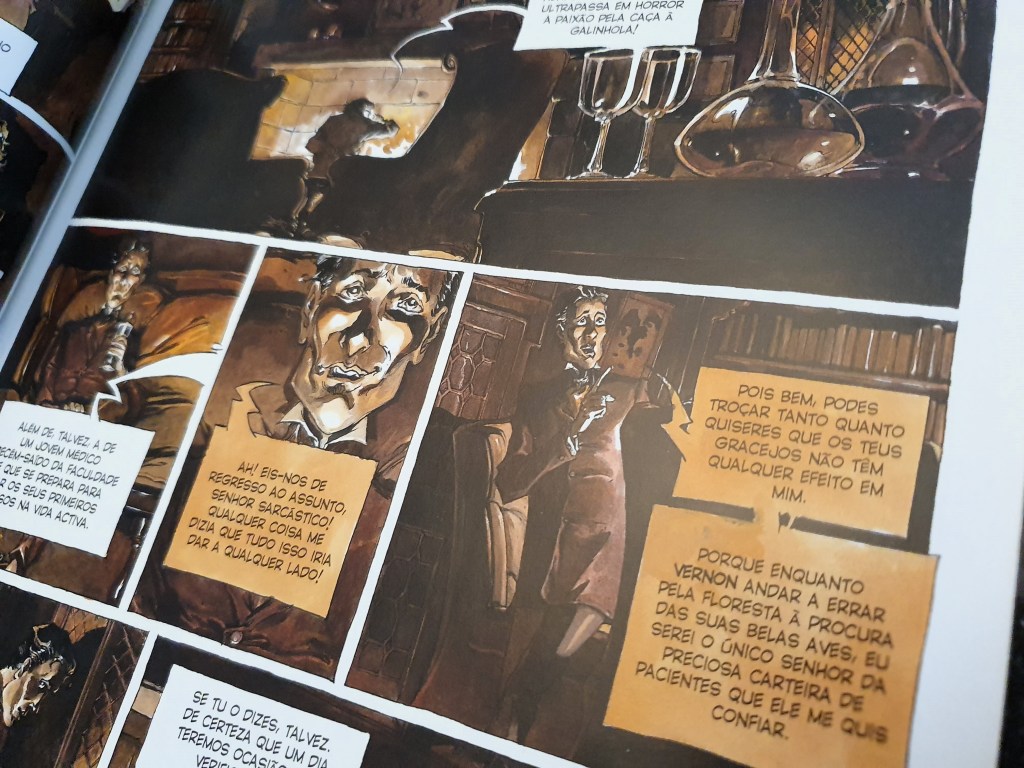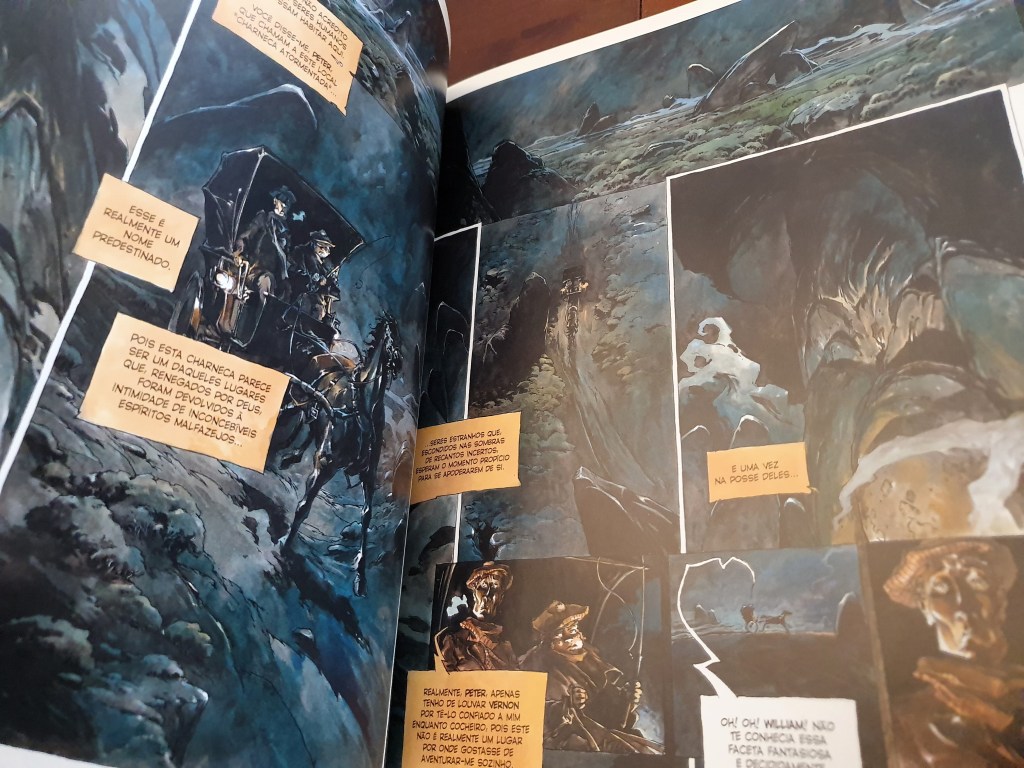 De ambiente gótico e visual curioso, adquiri este volume em leilão achando que teria alguma relação com Algernon Blackwood, autor de ficção especulativa do século XIX, publicado em Portugal pela Saída de Emergência, com um livro de contos. Até ao momento não encontrei nada que relacionasse o livro ao autor, ainda que existam alguns elementos comuns curiosos – a história apresentada na banda desenhada decorre no século XIX, Algernon Blackwood queria ser médico e o personagem principal desta história é médico.