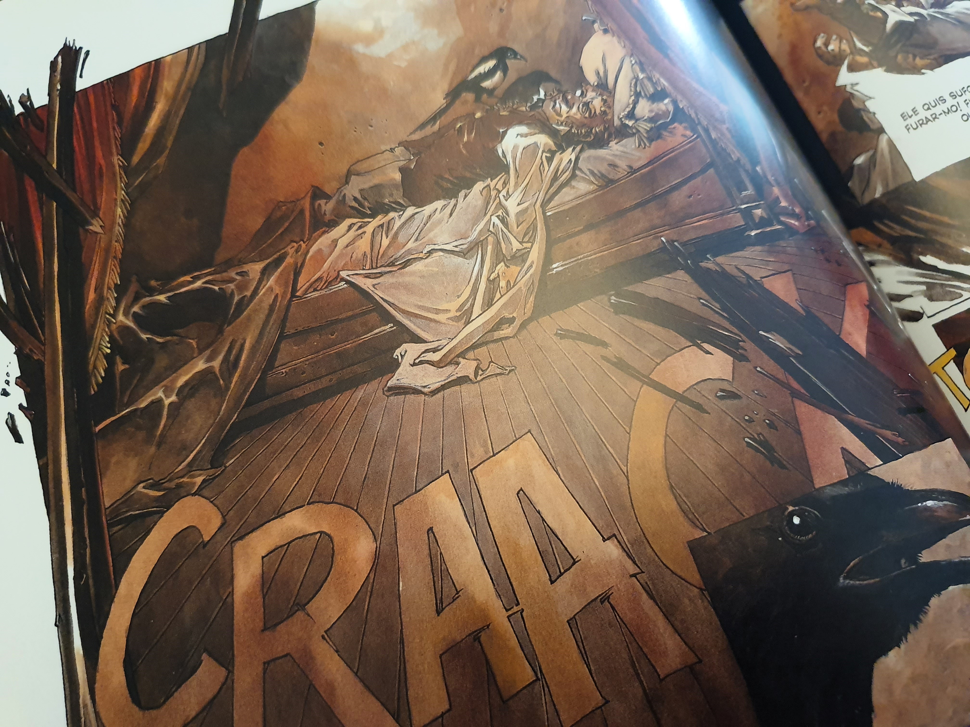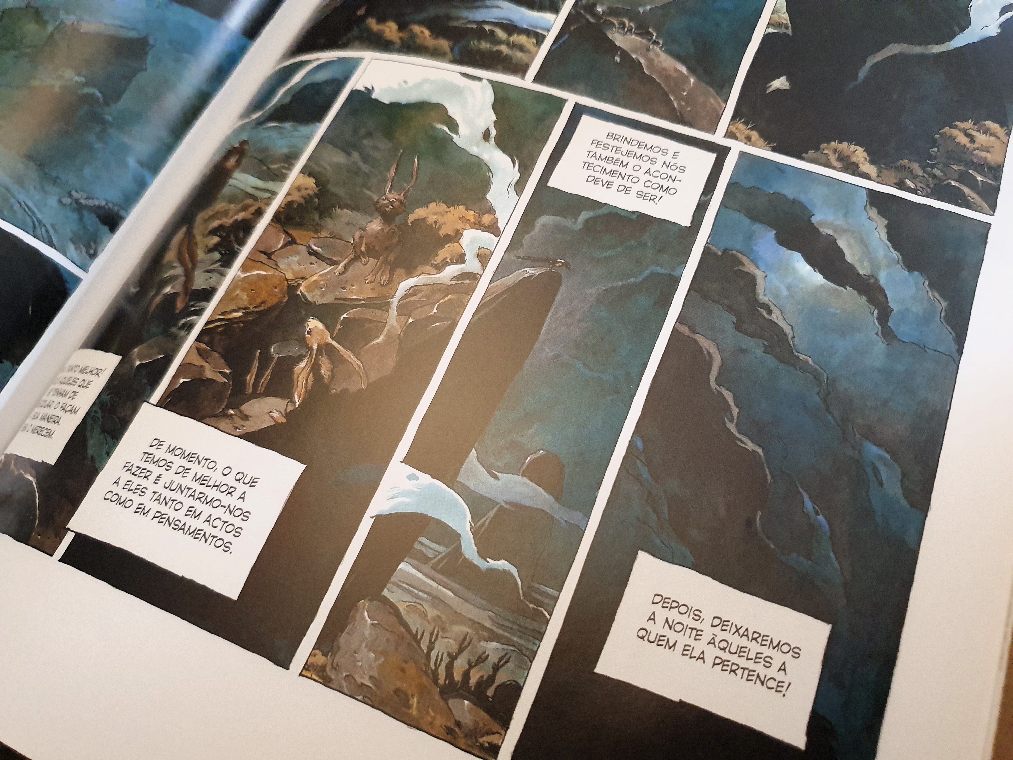 Para além desta boa construção narrativa no ambiente sombrio, este volume destaca-se pelo desenho. Tal como a história, várias páginas apresentam-se bastante escuras, com jogos de sombras e detalhes curiosos, num resultado visual que adorei.