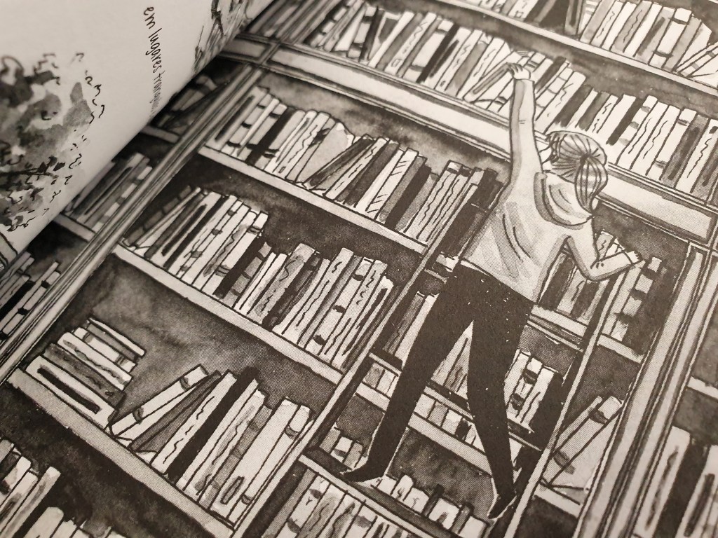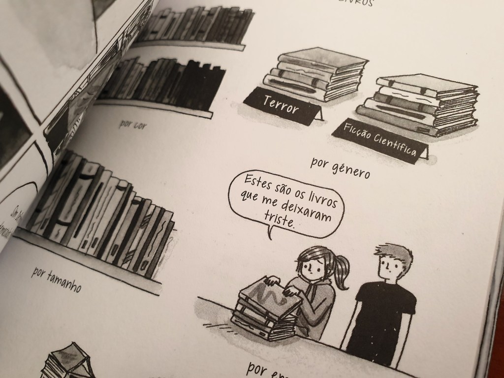 Eis o livro perfeito para quem adora ler e adquirir livros! Este pequeno livro de banda desenhada, publicado em Portugal pela The Poets and Dragons Society apresenta uma série de pequenas tiras semi-cómicas ou, pelo menos, bem dispostas, em torno de uma jovem que adora livros! Confesso que, em vários momentos, o livro parecia ter-me a mim como personagem principal.