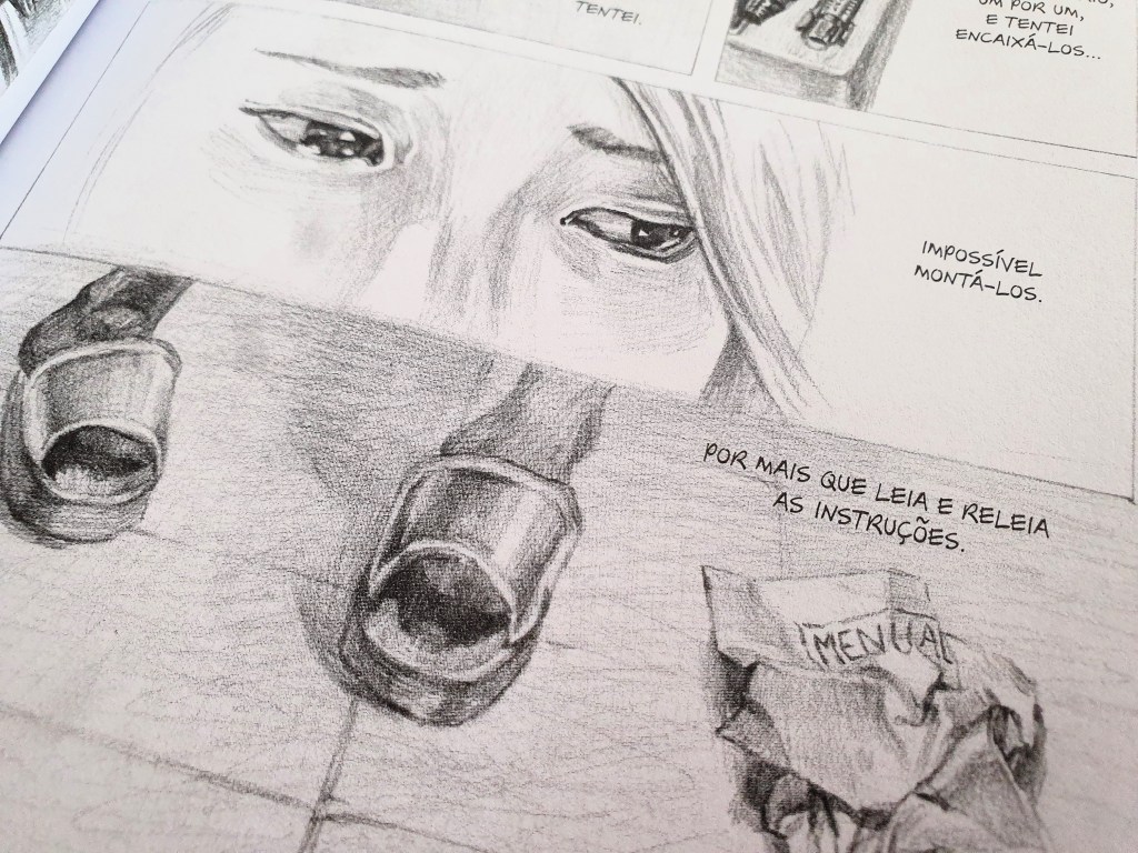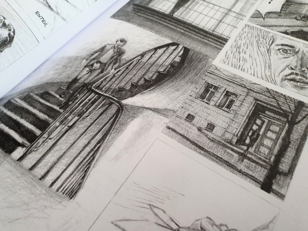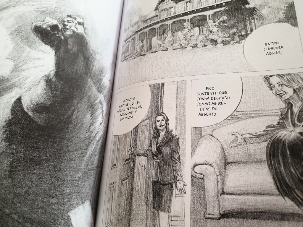 O livro apresenta, também, momentos bastante interessantes do ponto de vista visual. Os desenhos, a lápis são expressivos, demonstrando perspectivas únicas e introspectivas, ou momentos de maior aflição e exposição. Há, também, momentos ligeiramente cómicos ou caricatos que aliviam a narrativa, principalmente nos momentos focados no escritor.