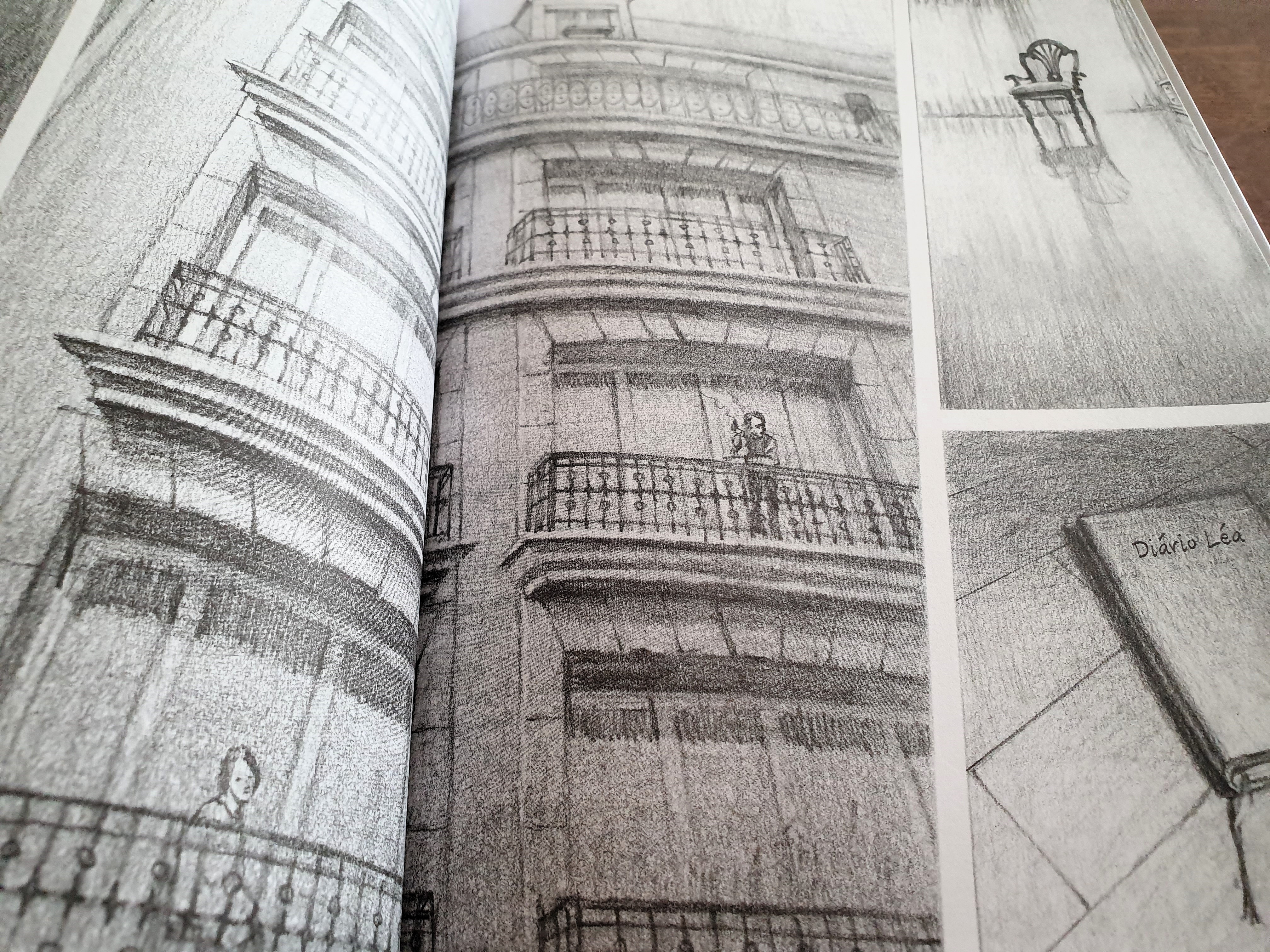 O livro apresenta, também, momentos bastante interessantes do ponto de vista visual. Os desenhos, a lápis são expressivos, demonstrando perspectivas únicas e introspectivas, ou momentos de maior aflição e exposição. Há, também, momentos ligeiramente cómicos ou caricatos que aliviam a narrativa, principalmente nos momentos focados no escritor.