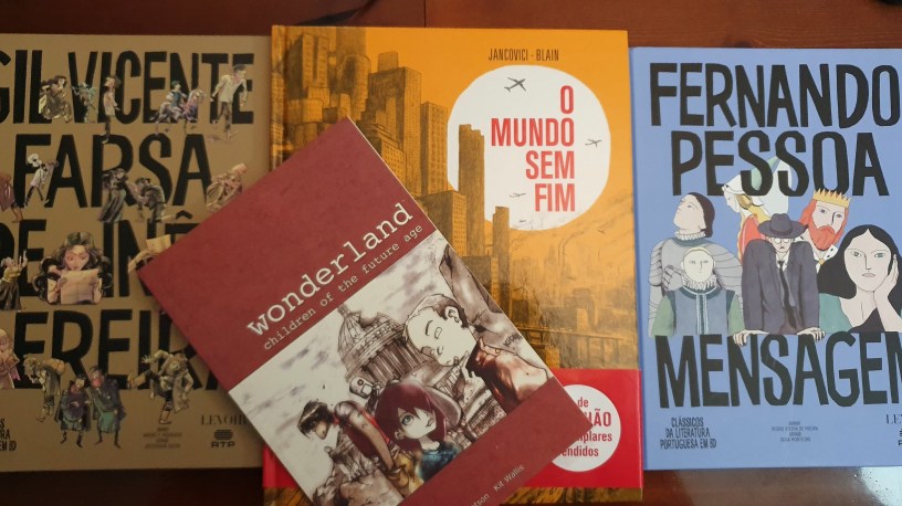 66 – Mensagem – Fernando Pessoa, adaptação de Pedro Vieira de Moura e Susa Monteiro – Se a adaptação de um clássico já não é fácil, então a de um poema épica, traz os seus próprios desafios. Mensagem apresenta a obra de Fernando Pessoa, enquadrando-a com desenhos alusivos à acção, quando esta decorre, ou com simbolismos quando as palavras não são tão facilmente adaptadas para algo concreto. É um trabalho interessante, ainda que o não seja o meu estilo de leitura;