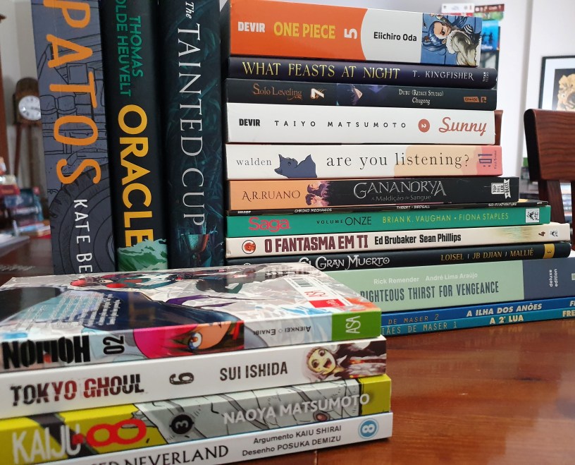 Solo Leveling é daquelas séries que pego quase imediatamente os volumes quando chegam. A ideia é interessante, a personagem atem tido algum desenvolvimento (ainda que nestes últimos se tenha reparado menos) e o mundo (quer o dos monstros, quer o dos humanos) tem adquirido detalhes curiosos. One Piece também é daquelas que leio rapidamente, ainda que demore um pouco mais de tempo a pegar dado o tamanho dos volumes. Já Sunny é uma série que me despertou sentimentos opostos, com detalhes curiosos, mas pouco envolvente. Veremos como corre este segundo volume.