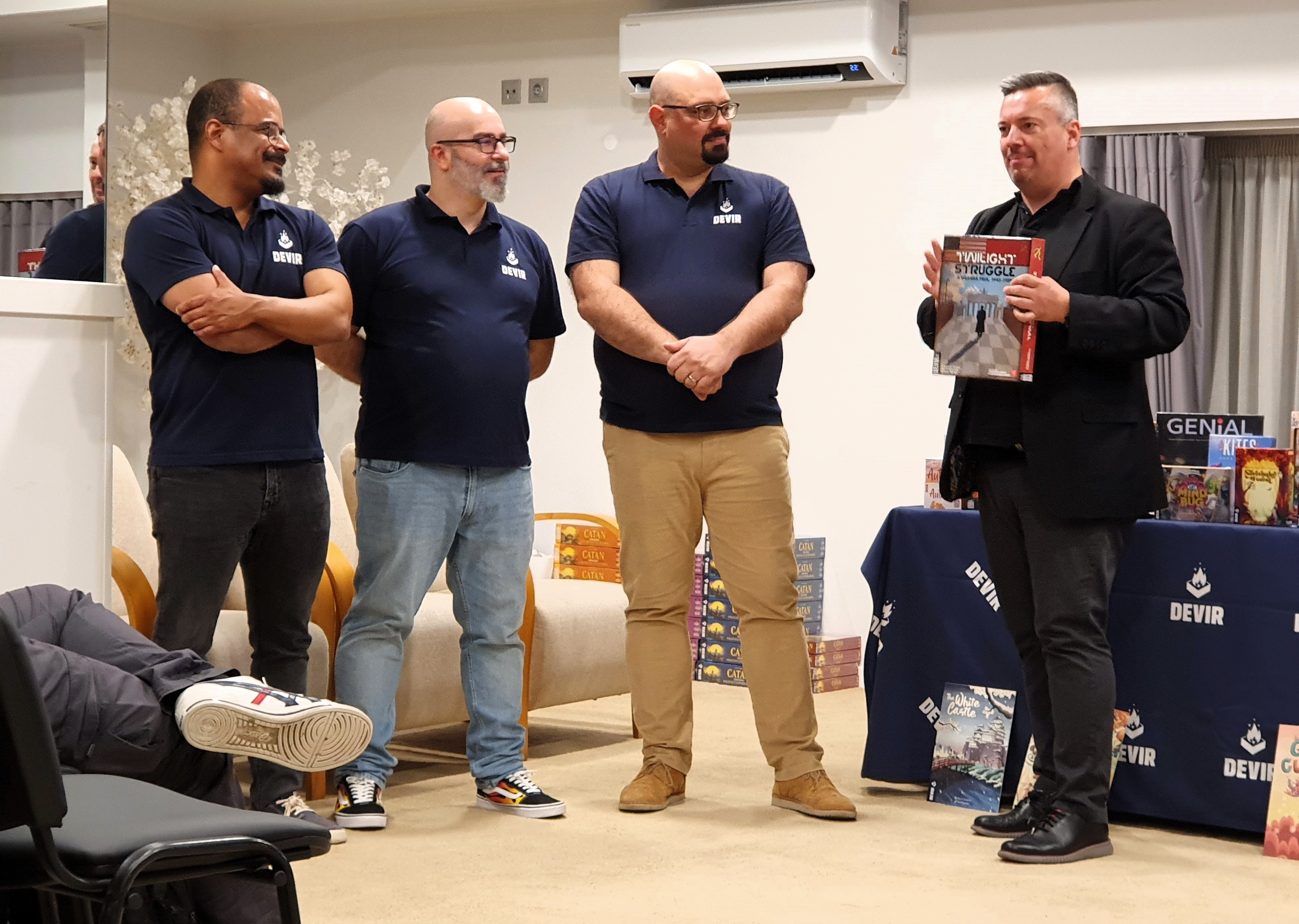 Jason Matthews foi outra das presenças da noite, sendo um dos autores de Twilight Struggle, um jogo que teve diversos anos no primeiro lugar do Boardgamegeek e que esteve montado vários dias na nossa mesa de jogo (dado que é um jogo longo e que dificilmente jogamos de uma só vez durante a semana).