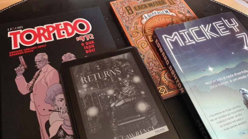 151 – Returns – Mark Lawrence – Este volume contém duas histórias que decorrem no mesmo Universo que The Book that wouldn’t burn, encontrando-se cronologicamente entre os dois primeiros volumes. Apesar de ter gostado bastante de Overdue (uma outra história que decorre no mesmo Universo) a primeira deste conjunto é inconsequente, destacando-se a segunda que nos apresenta o conceito de percepcionarmos, de forma diferente, a leitura de um mesmo livro em alturas diferentes da nossa vida;