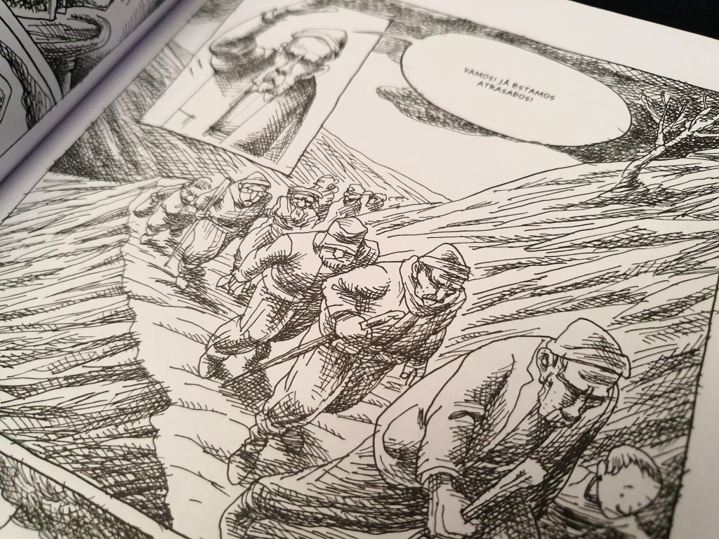 Apesar das circunstâncias que obrigam o grupo a tomar um perigoso caminho pela montanha, a narrativa possui vários detalhes cómicos, começando pelas várias personagens que compõem o grupo. Temos, portanto, um anão que mal aguenta com a sua carga, ou um velhote com uma prótese como perna que se desloca nos piores momentos.