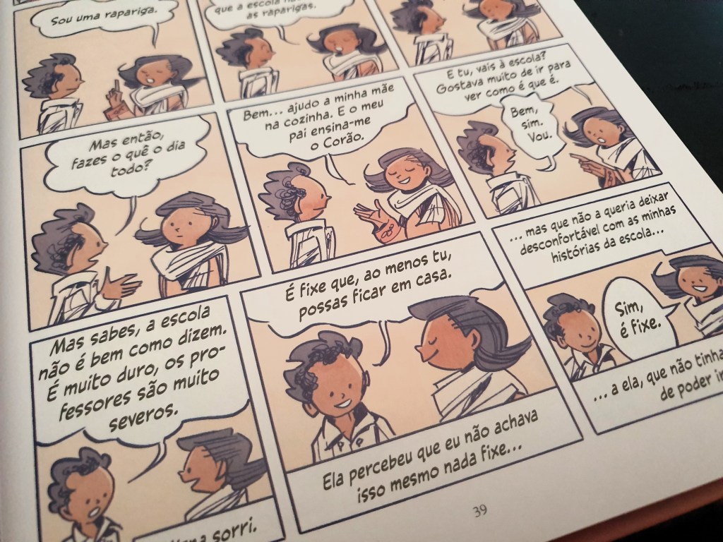 Visualmente, o desenho tem toques caricaturescos, mais focado nas personagens e nas suas interacções e como pouco detalhe para as paisagens ou o que rodeia as cenas. Em temos de discurso também se denotam algumas subtilezas que tornam o texto fluído, inteligente e cativante. Sendo um romance autobiográfico, Taha apresenta-se inicialmente como um cumpridor da palavra do pai, obediente, mas também curioso e questionador, duas características que, em adulto, justificarão o caminho que toma.