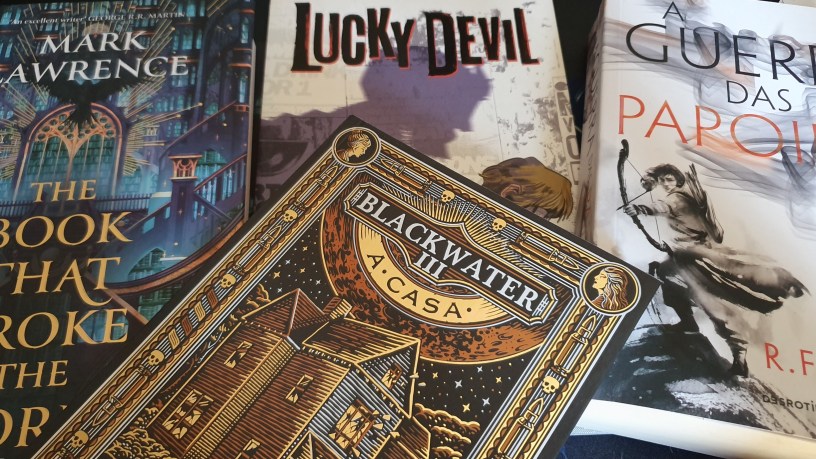 194 – The Book that Broke the World – Mark Lawrence – Eis um daqueles casos em que as expectativas eram demasiado elevadas. Gostei do primeiro volume da série e gostei de alguns contos isolados que o autor criou no mesmo mundo. Este livro teve bons momentos (sobretudo quando se focou em novas personagens) mas apresentou uma narrativa demasiado saltitante e confusa, cruzando linhas temporais em mundos diferentes, com combates nem sempre explicáveis;