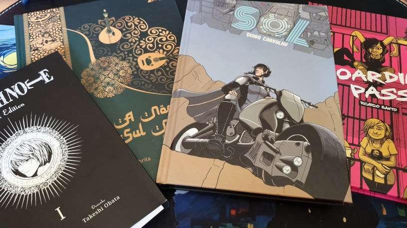 205 – Death Note – Vol. 1 – Tsugumi Ohba e Takeshi Obata – Eis uma série mangá que me despertou interesse pelo conceito. Os deuses da morte possuem pequenos cadernos onde colocam o nome dos seres humanos que devem morrer. Neste caso, um dos deuses da morte possui dois cadernos, pelo que, entediado, deixa cair um na Terra. Quem o apanha é um inteligente estudante, filho de um investigador policial, que resolve usar o caderno para eliminar os criminosos. Esta perspectiva, fria e calculista, leva grandes detectives a debruçarem-se no caso, sendo que o estudante é, claro, um dos suspeitos.