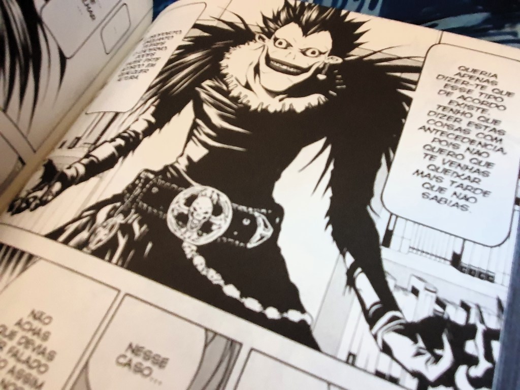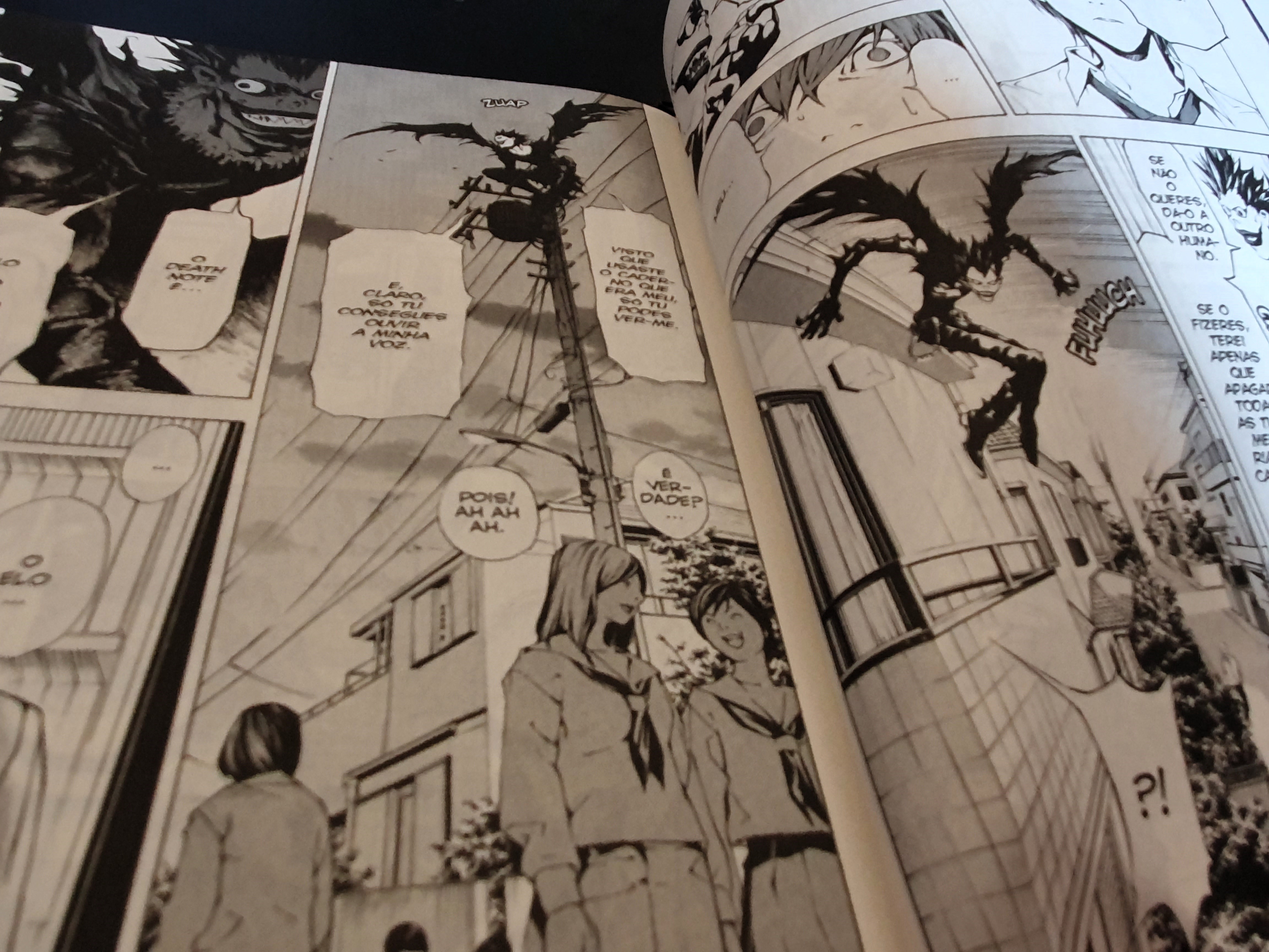 Opõe-se a investigação com o foco em Light, num policial invertido carregado de tensão e humor negro, mas onde o leitor conhece ambas as partes da equação. E mesmo do lado dos “bons” parecem existir algumas acções duvidosas. A par com estes focos, existem interacções curiosas de Light com o Deus da Morte que perdeu o Caderno, uma entidade sobrenatural que tem por objectivo divertir-se com a confusão causada.