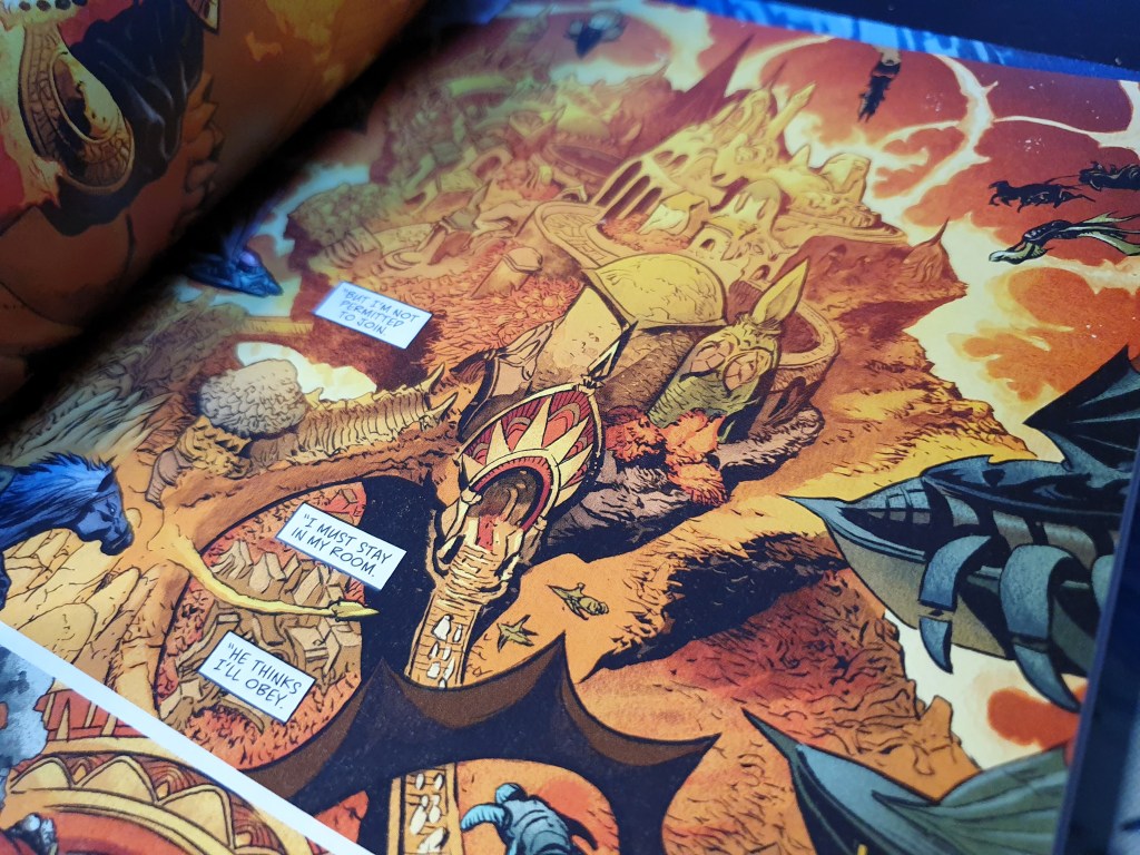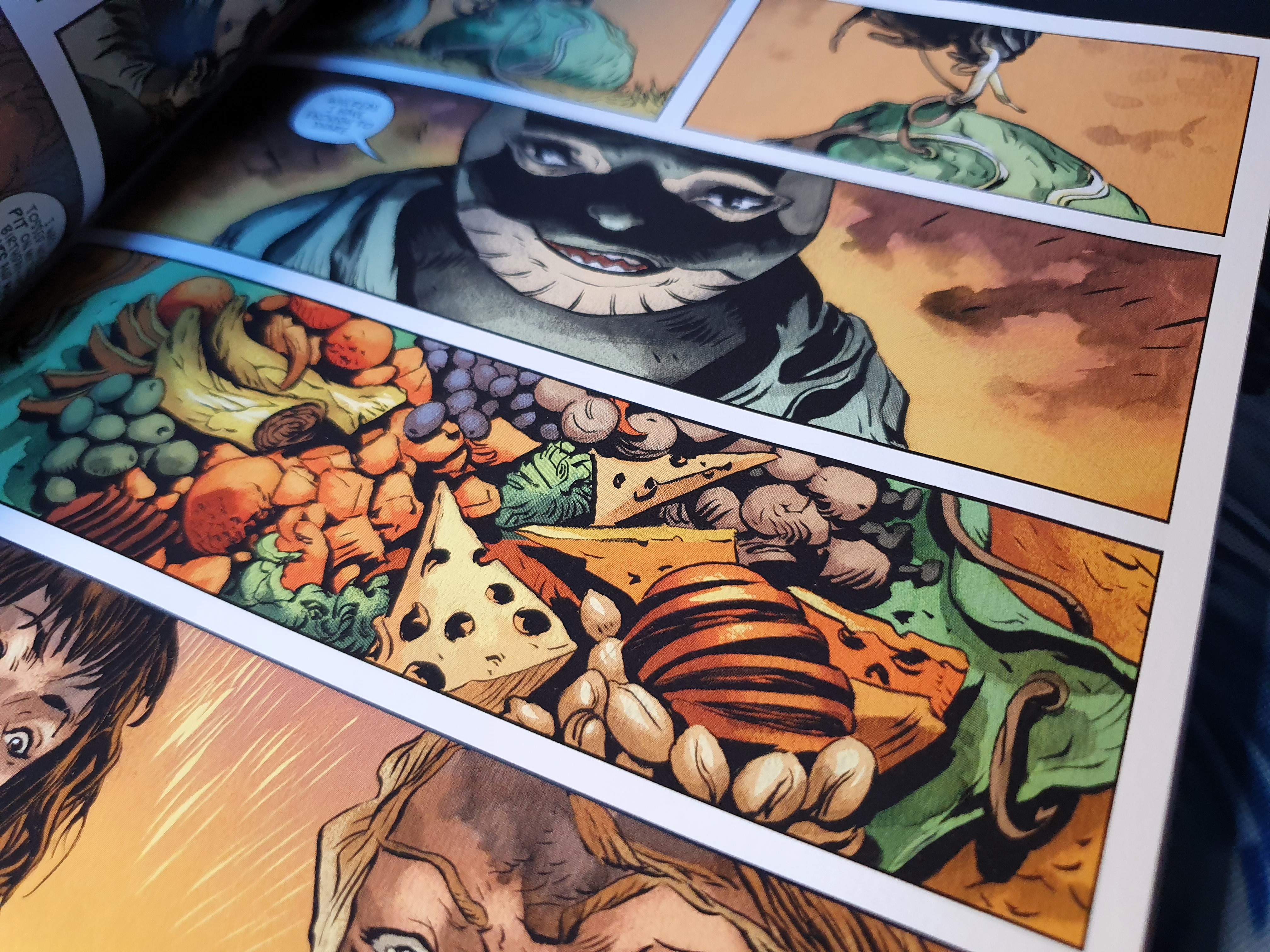 Visualmente, este volume é brutal. A premissa permite apresentar paisagens terrestres extraordinárias, bem como cenários sobrenaturais quando se foca nos deuses. Também as personagens, com formas animais ou divinas , possibilitam a criação de detalhes fantásticos, de elevado contraste cromático.