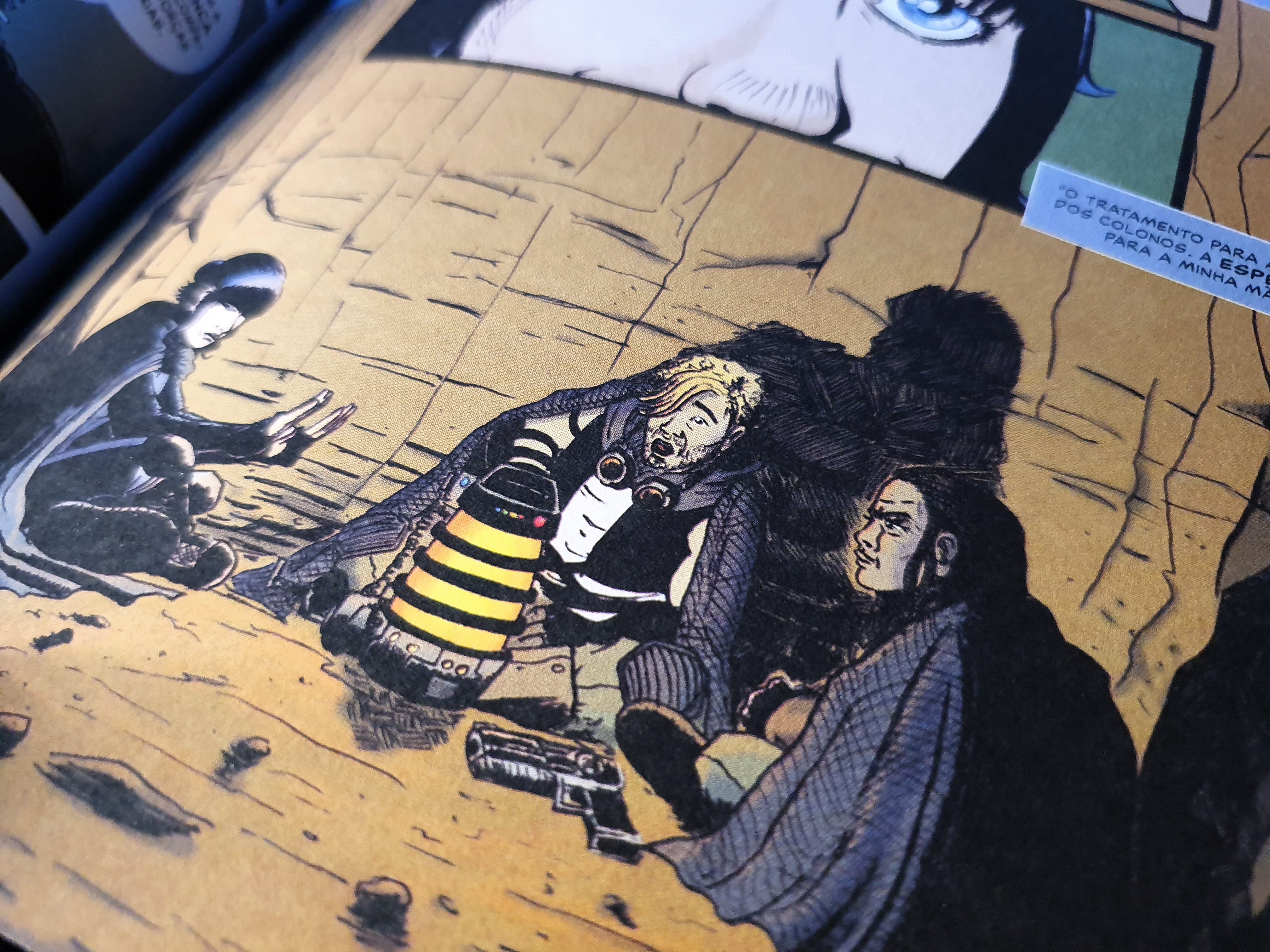 O resultado é um trabalho de alguma complexidade, principalmente se o compararmos com o contexto editorial português, destacando-se quer pelo tamanho (quase 150 páginas) quer pelos temas abordados (ficção científica num futuro distante) e pelo visual, onde, aproveitando o tema, o autor cria fortes cenários.