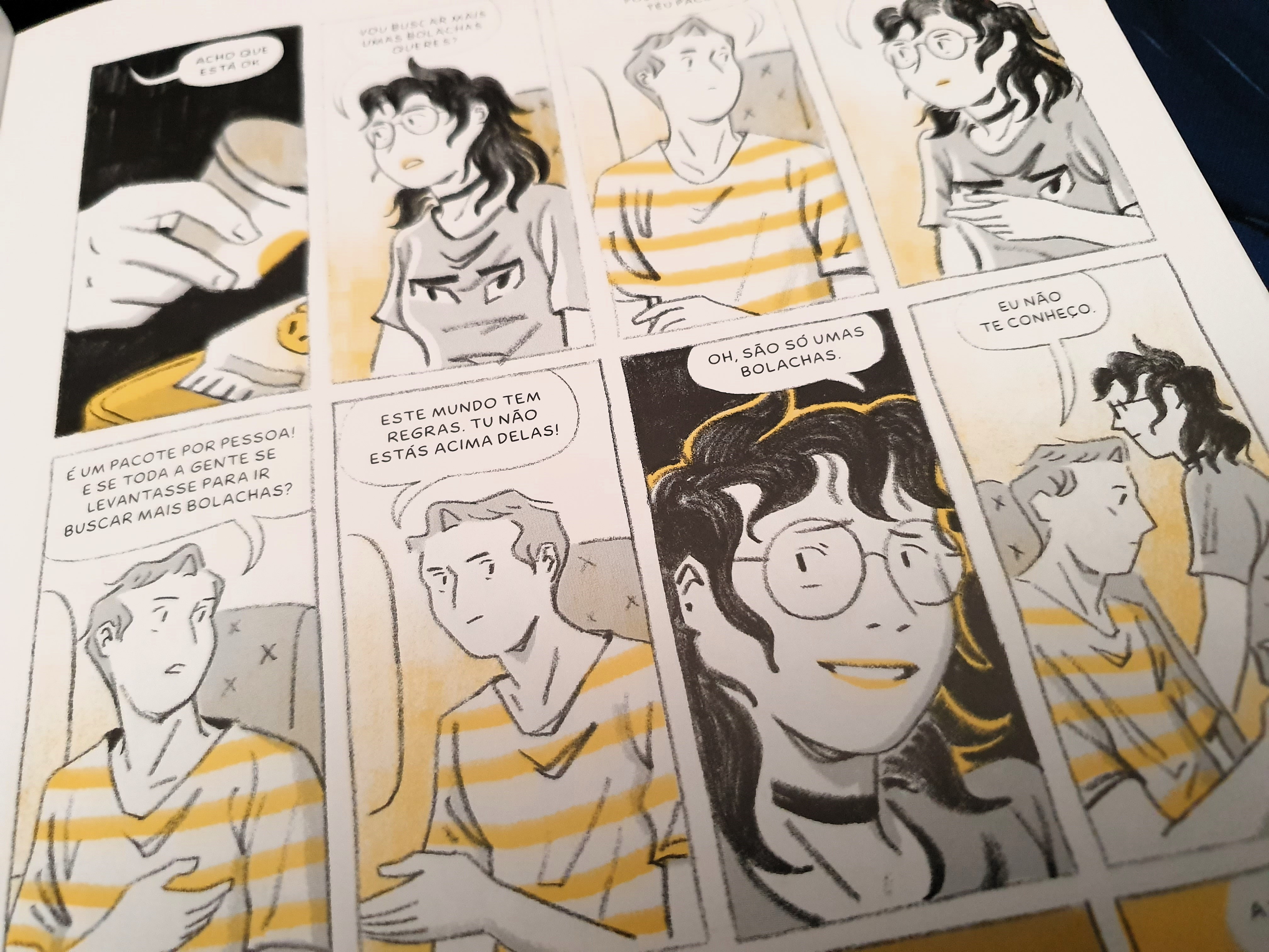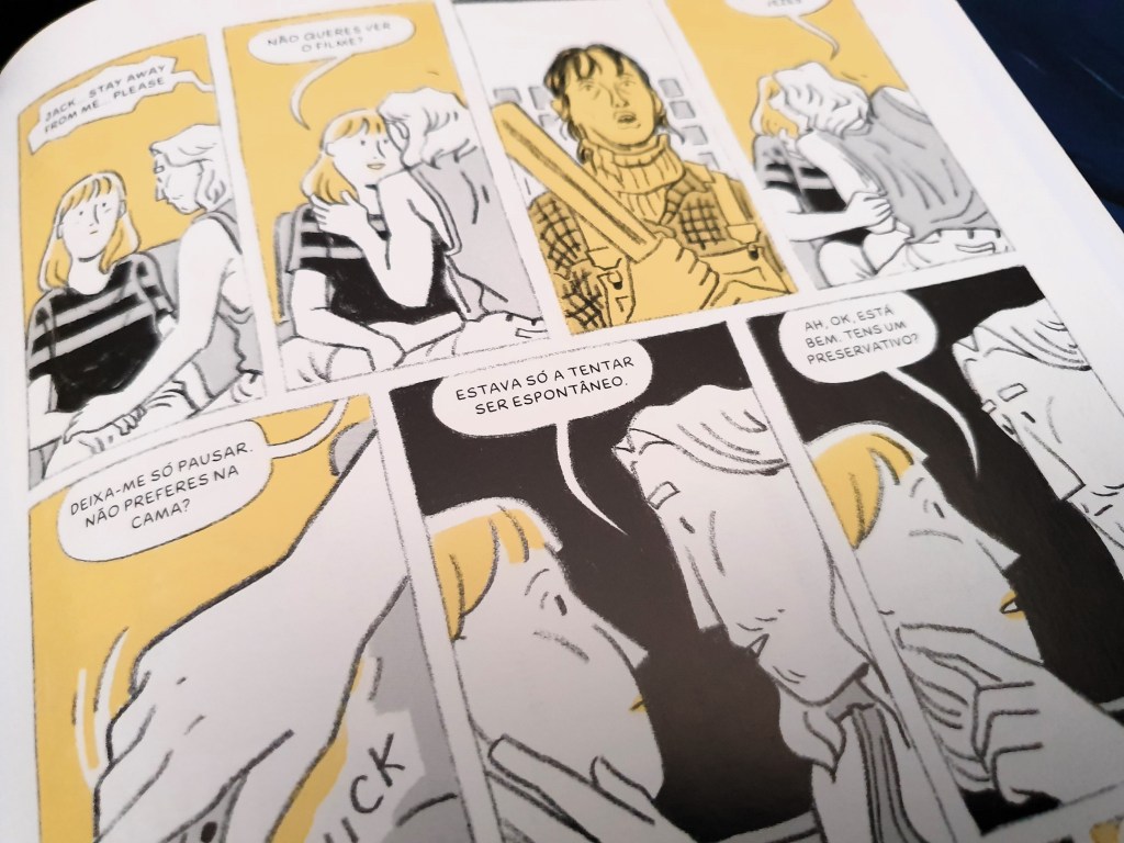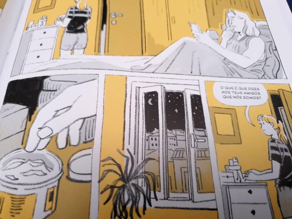 Visualmente, as páginas apresentam três cores, preto, branco e amarelo. O foco dos desenhos encontra-se mais nas personagens e nas suas expressões, com raras caracterizações do ambiente (apenas quando necessário para nos mostrar onde se encontram). As expressões faciais são subtis mas captáveis pelo leitor, ajudando na percepção das interacções.