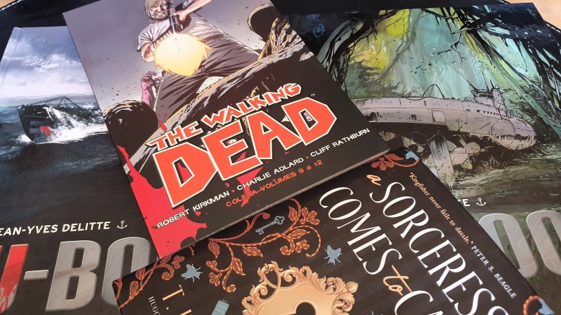 242/3 – U-Boot – Vol. 1 e 2 – Jean-Yves Delitte – Série peculiar que se centra nos submarinos da Segunda Guerra Mundial, colocando passageiros bastante peculiares. A série saltita entre momentos diferentes na história, oscilando sobretudo entre um futuro pouco distante em que uma empresa domina as principais tecnologias (e consequentemente a sociedade) e os acontecimentos macabros a bordo de um submarino alemão que é desviado para a América do Sul. É uma série com bons momentos visuais, ainda que em termos narrativos não seja excepcional;