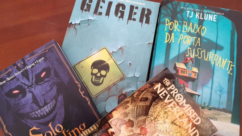 255 – Geiger – Geoff Johns, Gary Frank e Brad Anderson – Esta banda desenhada leva-nos a um futuro distópico em que a sociedade humana colapsou com uma guerra nuclear. É neste contexto que um homem coloca a família num bunker mas, com as explosões se torna uma espécie de tocha humana radioactiva. Este homem, o único que se pode deslocar no exterior sem máscaras, promete proteger o bunker até que seja seguro sair, tornando-se uma lenda entre os sobreviventes. Mas quando dois jovens se cruzam no seu caminho a precisar de protecção, a sua existência transforma-se. É uma banda desenhada carregada de acção, com bons desenhos, ainda que não seja muito profunda na narrativa, mas que diverte. Sou capaz de prosseguir pelo próximo volume;