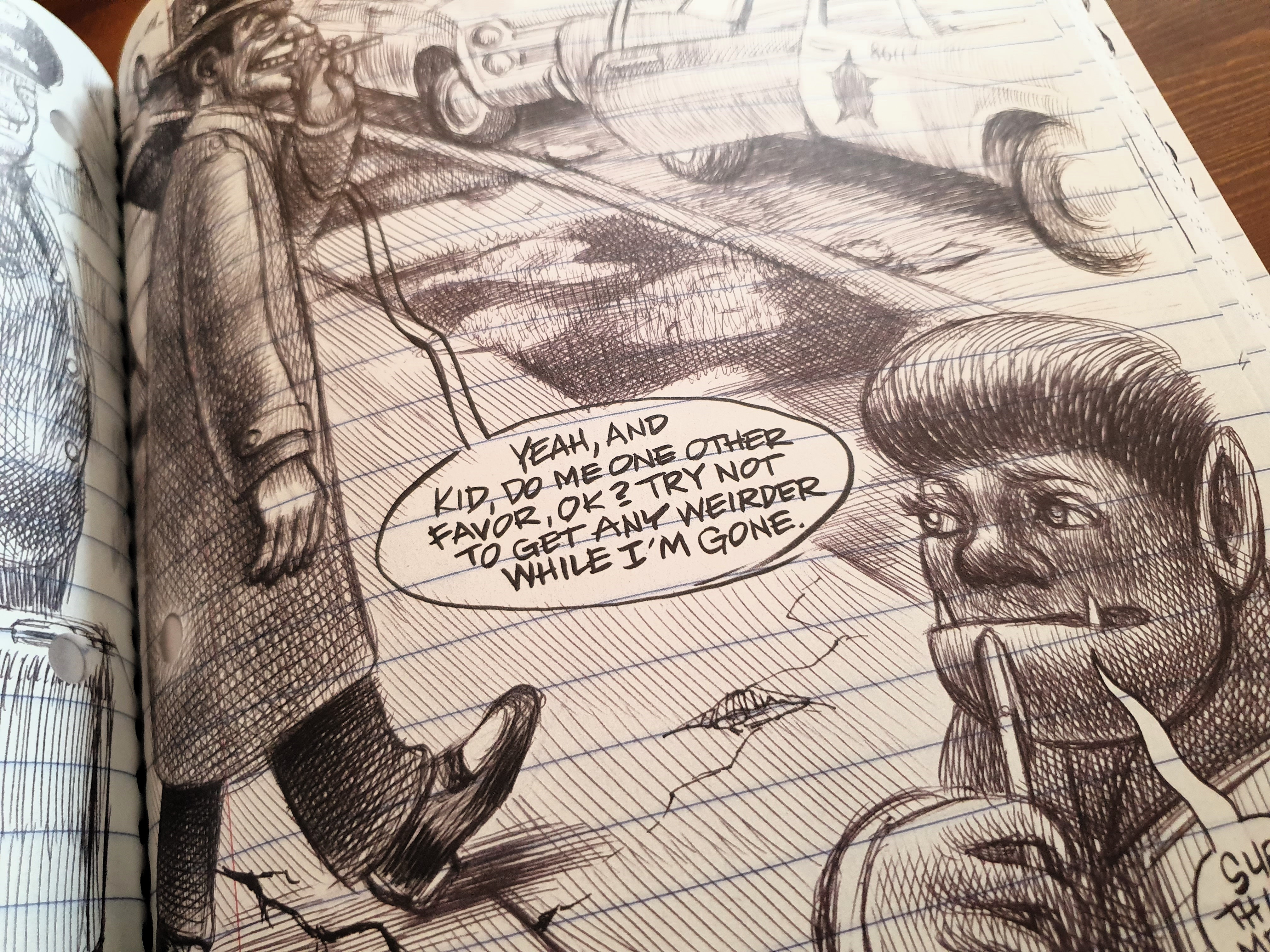 Esta banda desenhada apresenta um formato pouco tradicional. Para além das letras, o formato é bastante livre em várias páginas, com um aspecto mais de rascunho nalgumas, letra manuscrita, desenhos lápis, rabiscos no canto, elementos com aspecto de colagens. O resultado é quase tosco nalguns momentos, mas um tosco pensado e planeado que, apesar do aparente caos, resulta em páginas fenomenais.
