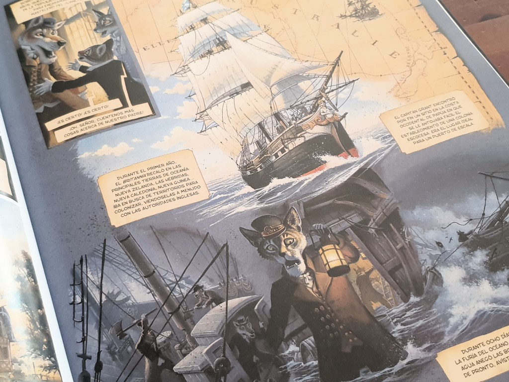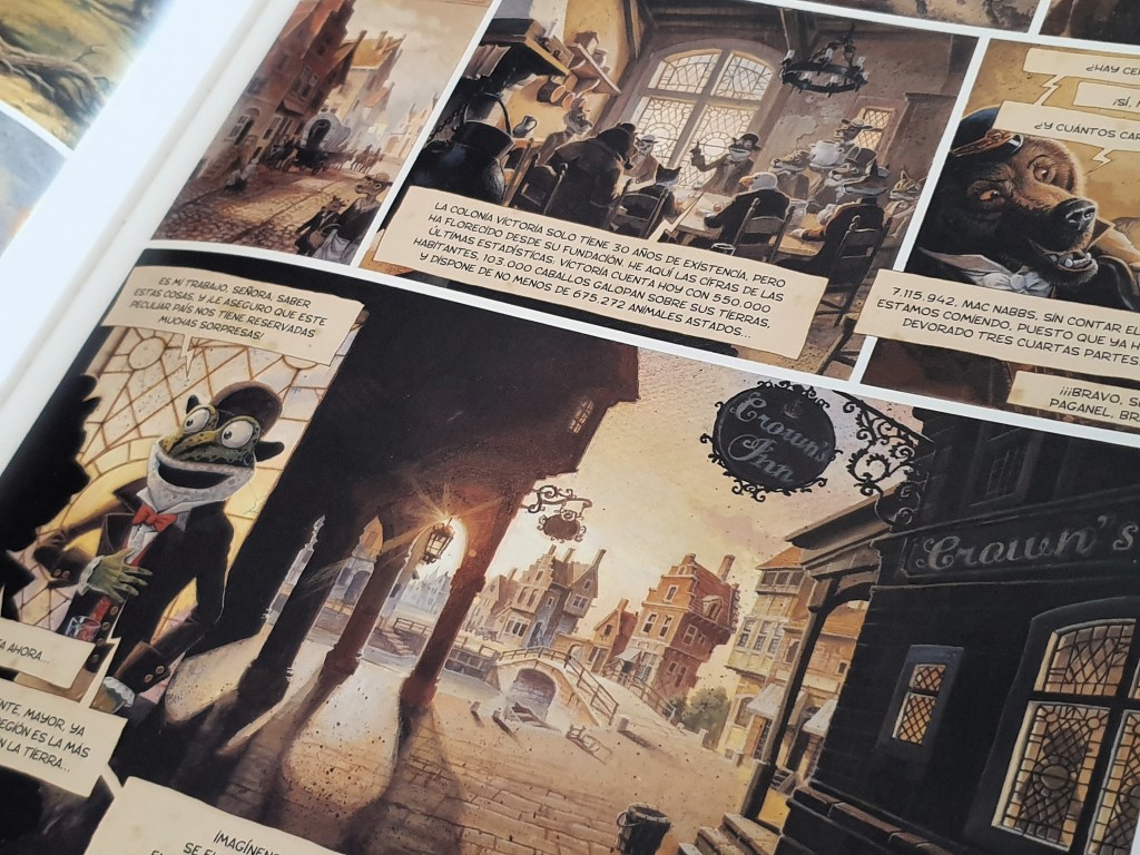 O único ponto que não me caiu totalmente bem é a apresentação das personagens com formato de animais. Ainda que visualmente confira um aspecto interessante às páginas, a verdade é que me criou algum distanciamento perante uma aventura que pretende ser um pouco realista. Ultrapassando esse elemento, este volume destaca-se quer pelos desenhos, quer pela edição – belíssima, cosida, com baixos relevos.